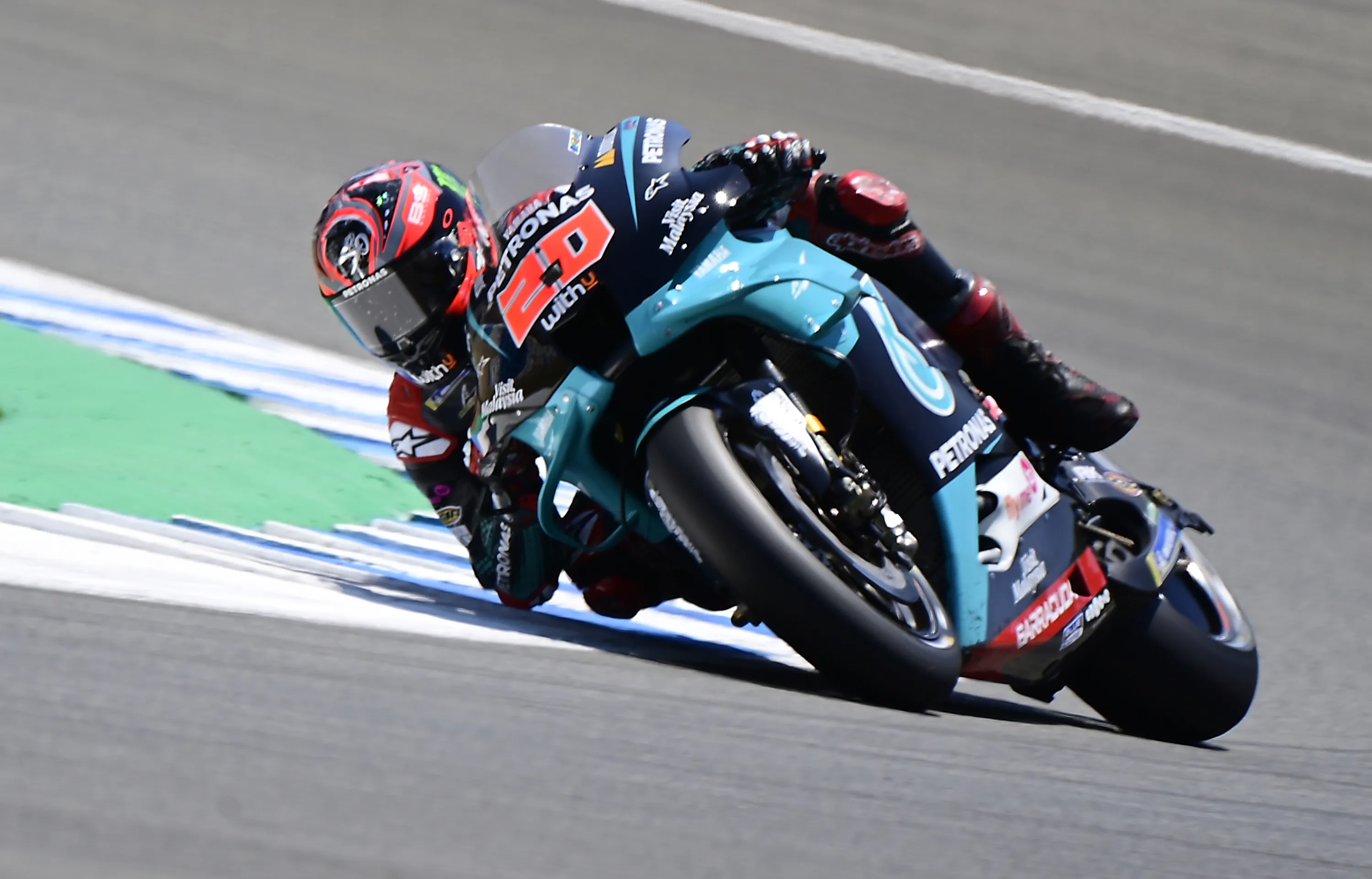 Petronas Yamaha SRT's French rider Fabio Quartararo competes during the MotoGP qualifying session of the Spanish Grand Prix at the Jerez racetrack in Jerez de la Frontera on July 18, 2020. (Photo by Javier Soriano/AFP Photo)