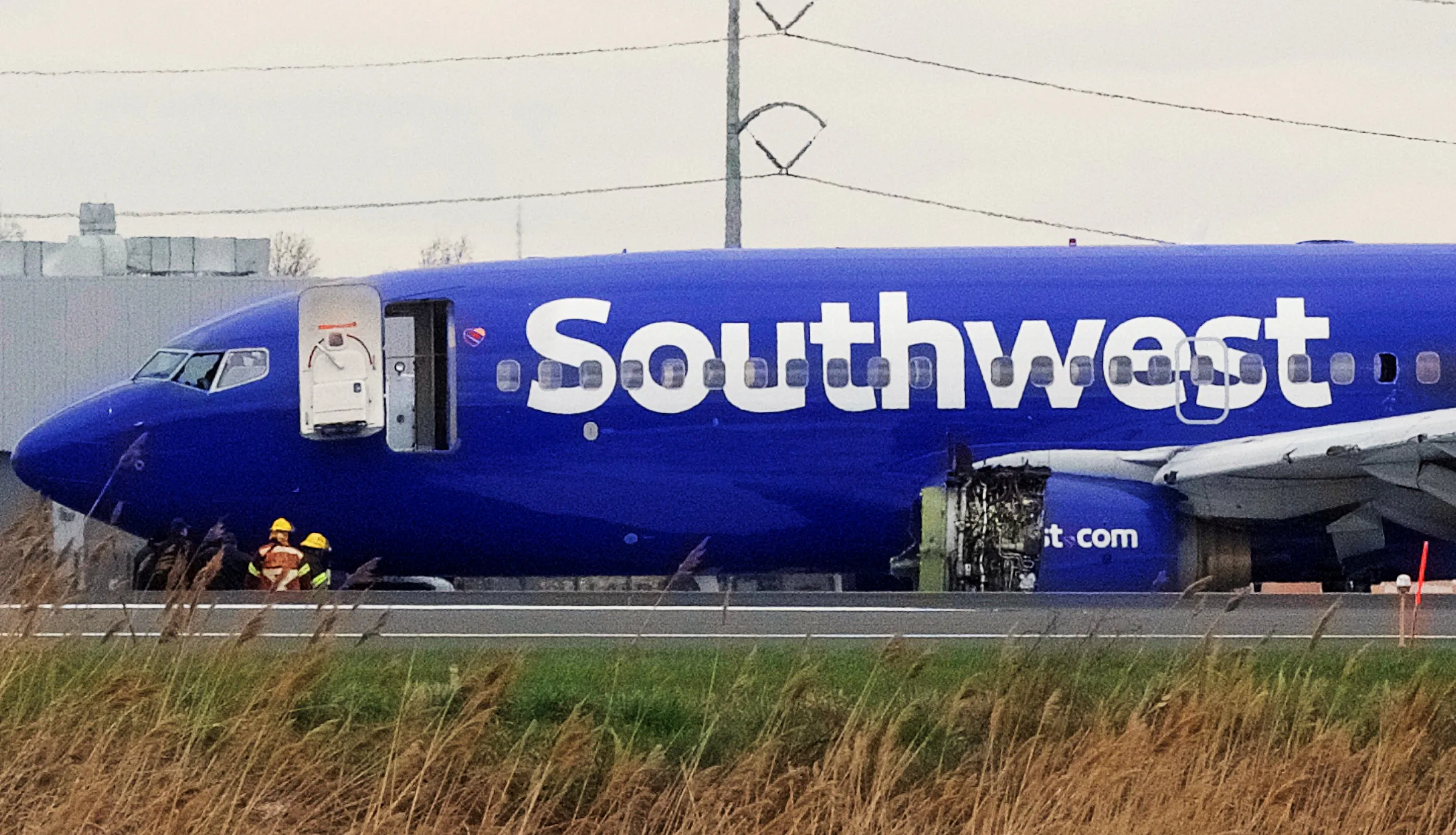 Emergency personnel monitor the damaged engine of Southwest Airlines Flight 1380, which diverted to the Philadelphia International Airport this morning after the airline crew reported damage to one of the aircraft's engines, on a runway in Philadelphia, Pennsylvania U.S. April 17, 2018. (Photo by Mark Makela/Reuters)