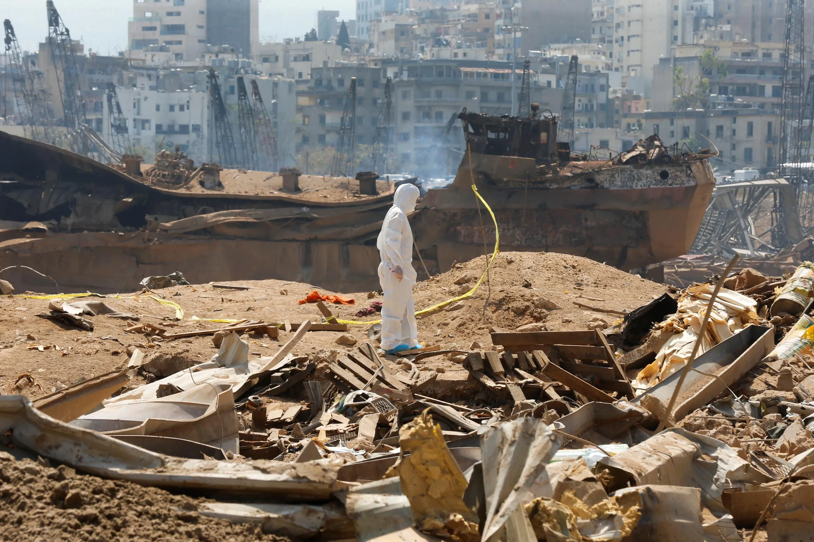 A forensic inspector walks on rubble at the site of Tuesday's blast, at Beirut's port area, Lebanon, August 7, 2020. (Photo by Mohamed Azakir/Reuters)