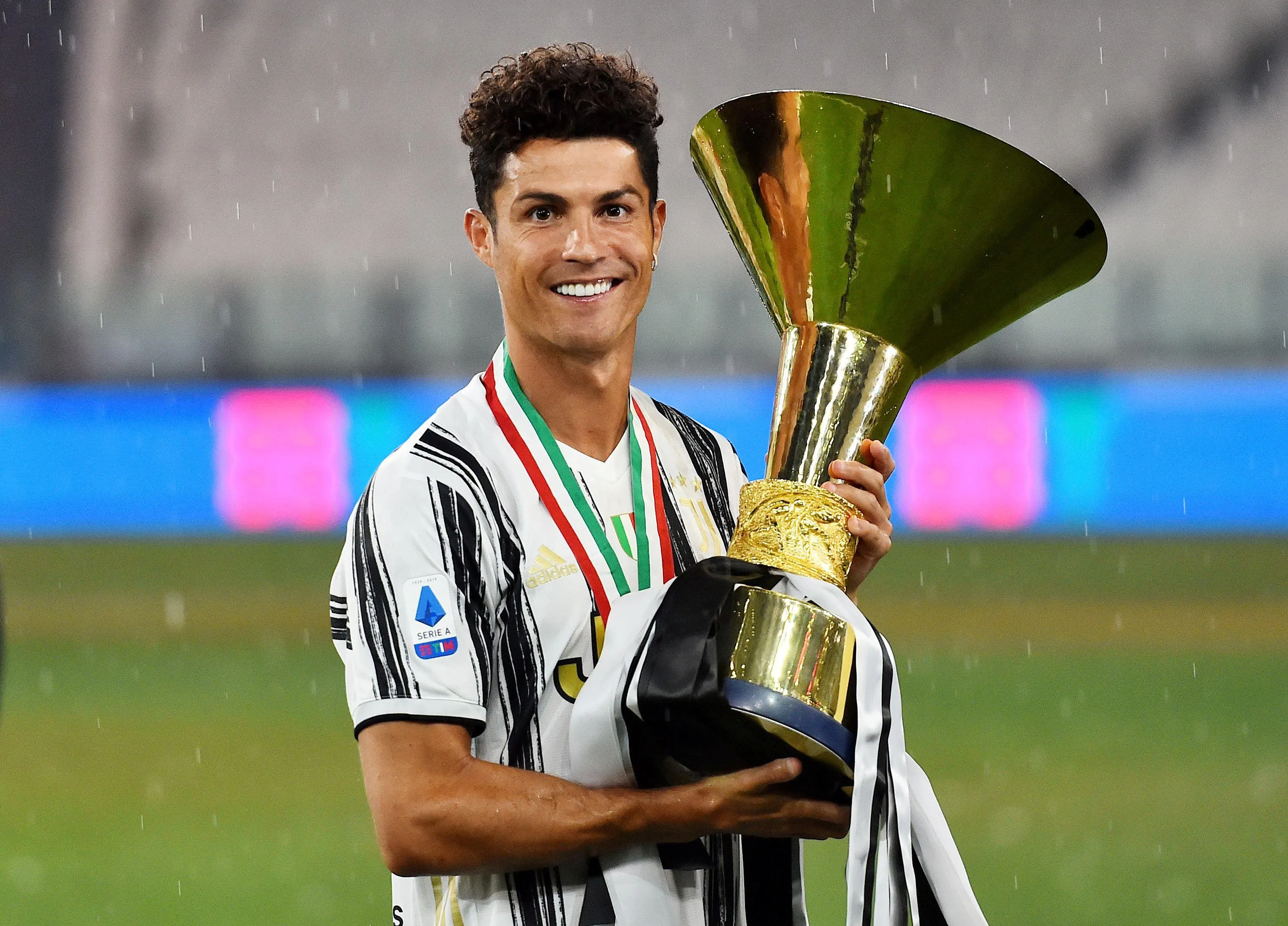 Juventus' Cristiano Ronaldo celebrates with the trophy after winning the Serie A at Allianz Stadium, Turin, Italy, August 1, 2020. (Photo by Massimo Pinca/Reuters)