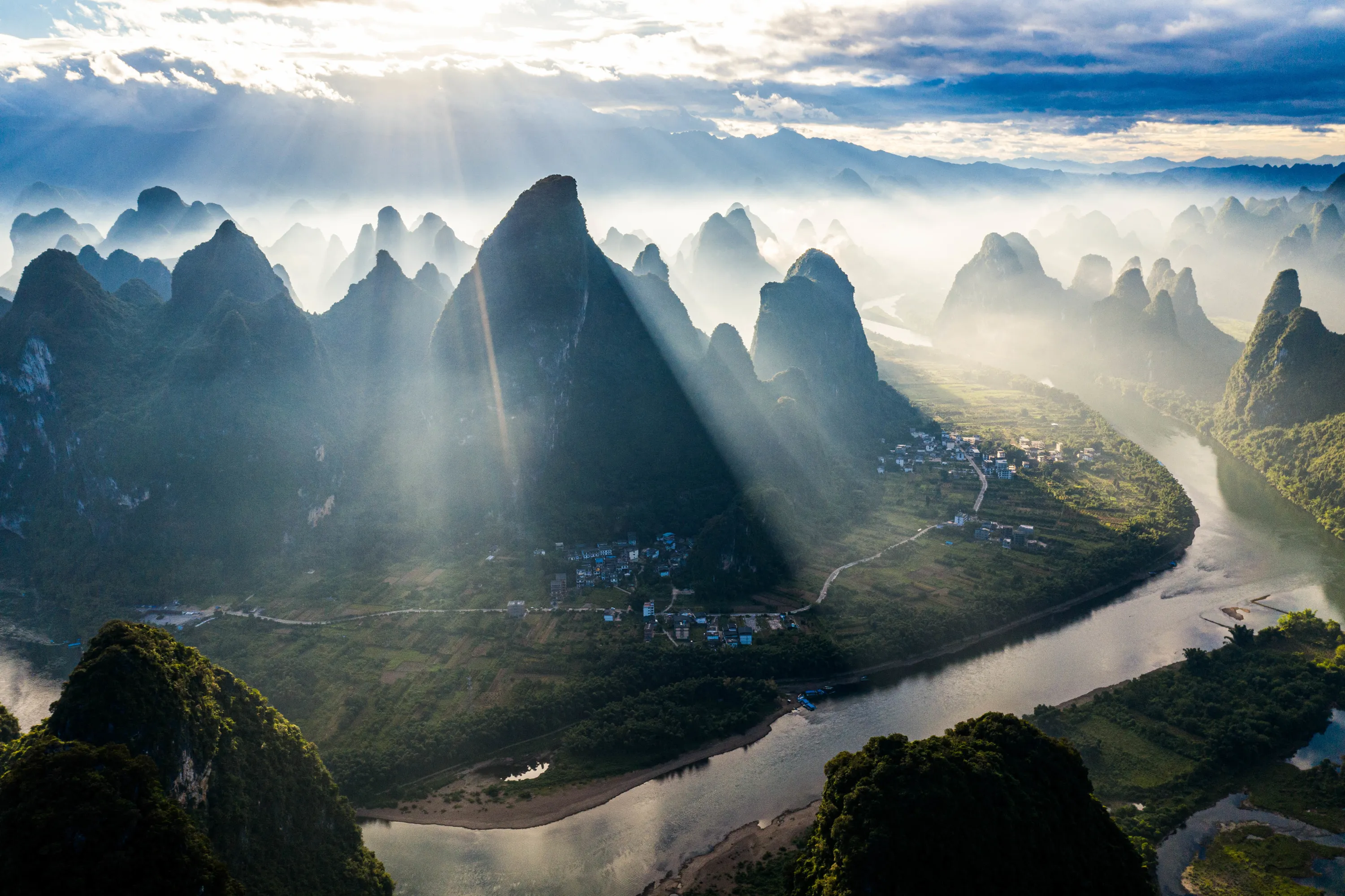 Dawn breaks over the Li River and Xianggong mountain in Guilin, China at 4:30 in the morning of August 1, 2020. (Photo by Sipa Asia/Rex Features/Shutterstock)