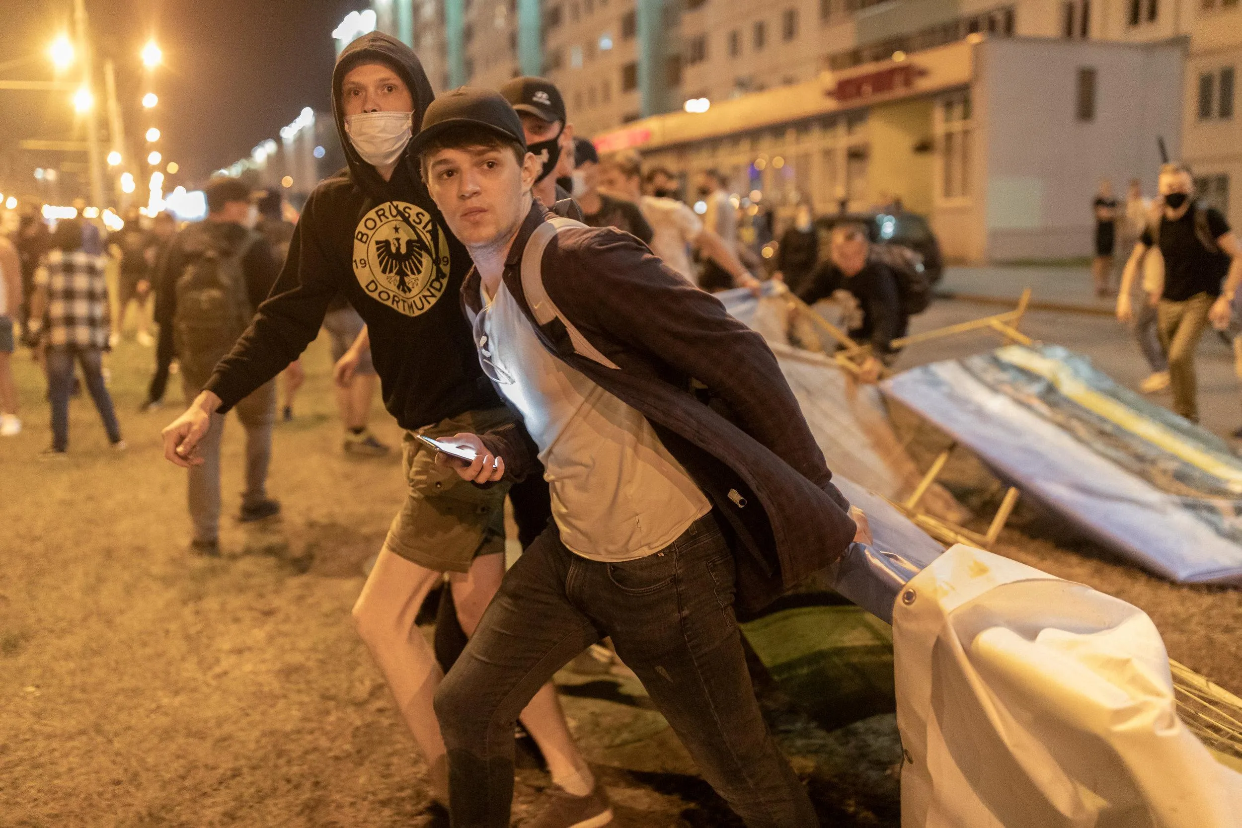 Demonstrators set up a barricade on a street during a rally following the presidential election in Minsk, Belarus on August 10, 2020. (Photo by Jedrzej Nowicki/Agencja Gazeta via Reuters)
