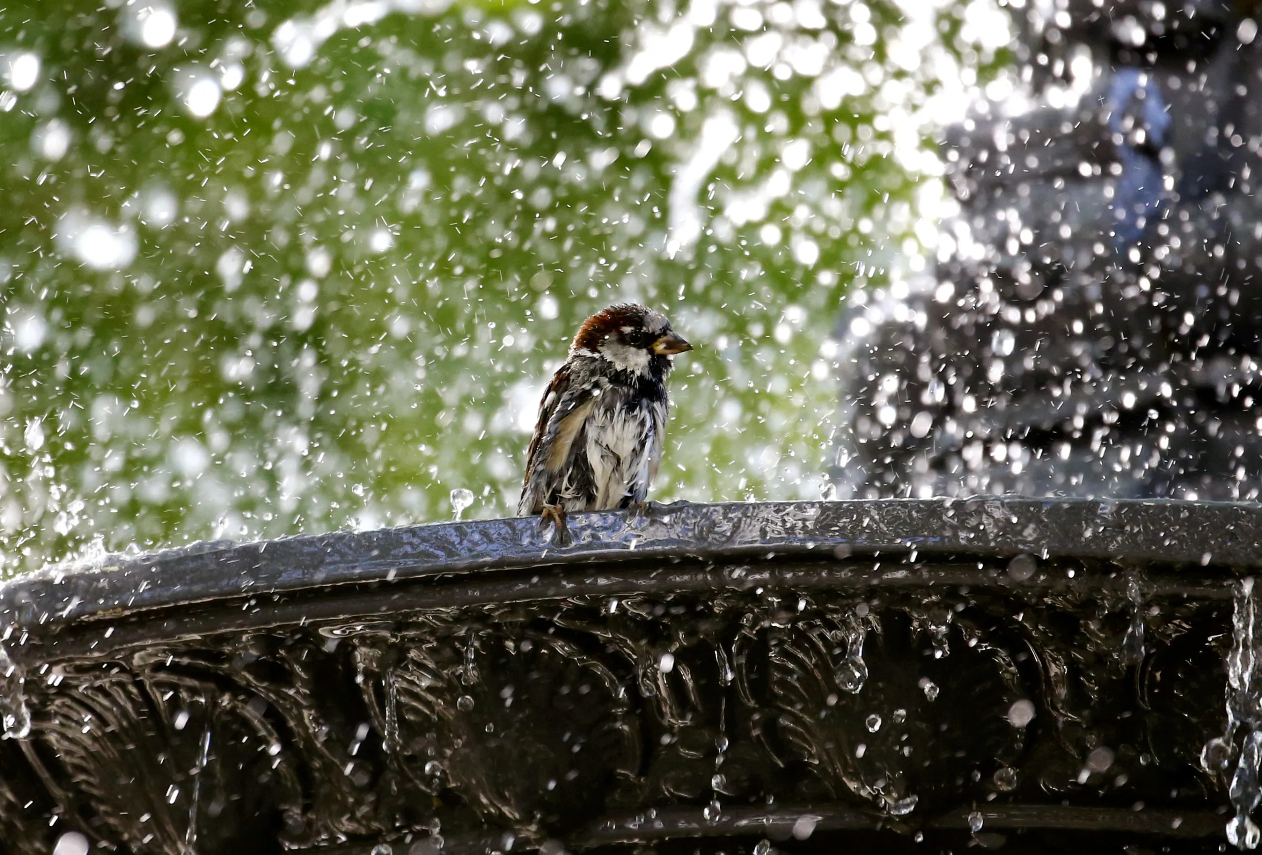 A sparrow enjoys refreshment in a public fountain during hot summer weather in Zurich, Switzerland on August 12, 2020. (Photo by Arnd Wiegmann/Reuters)