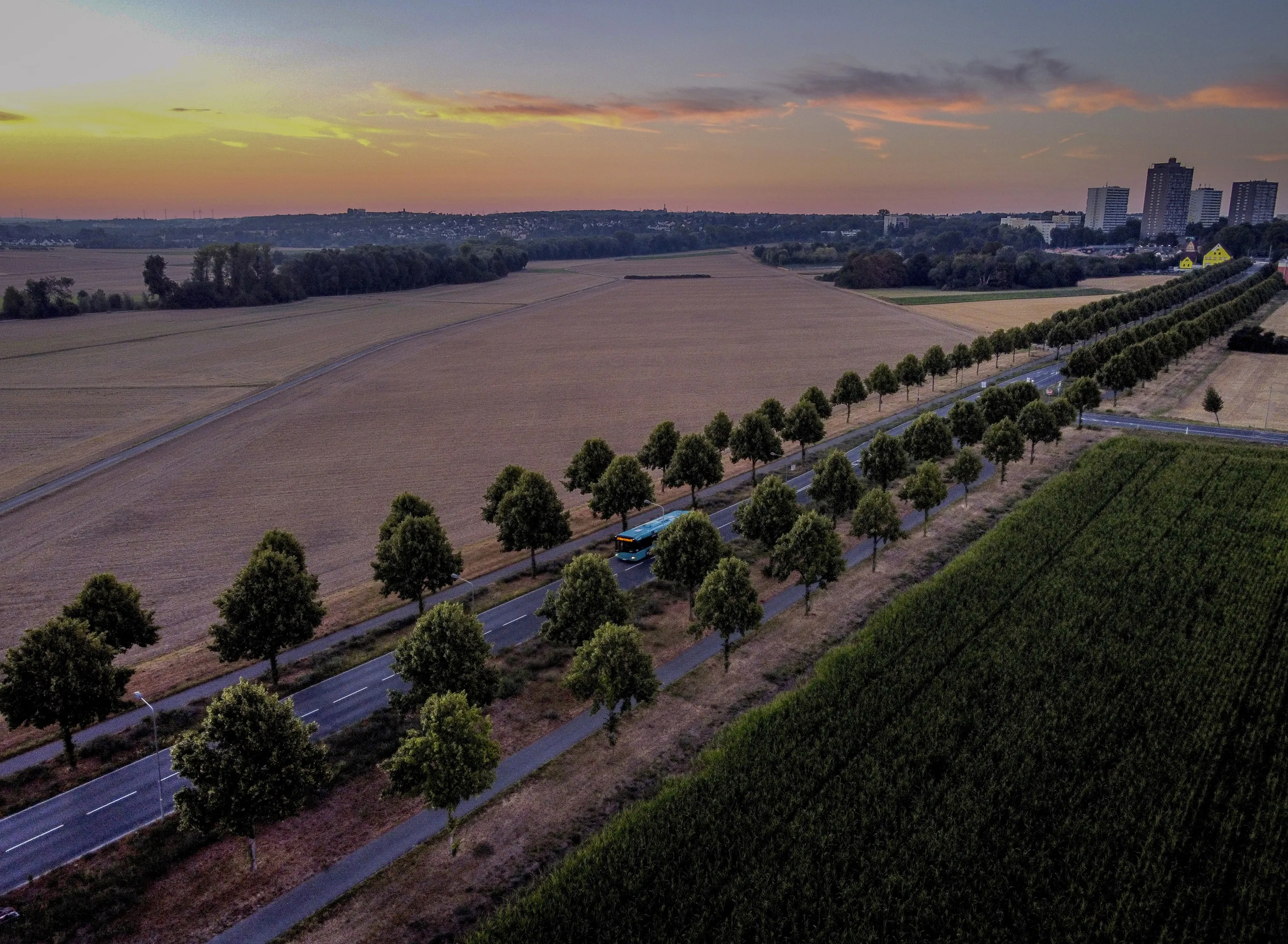 A bus is driven through an alley on the outskirts of Frankfurt, Germany, before sunrise on Thursday, August 6, 2020. (Photo by Michael Probst/AP Photo)