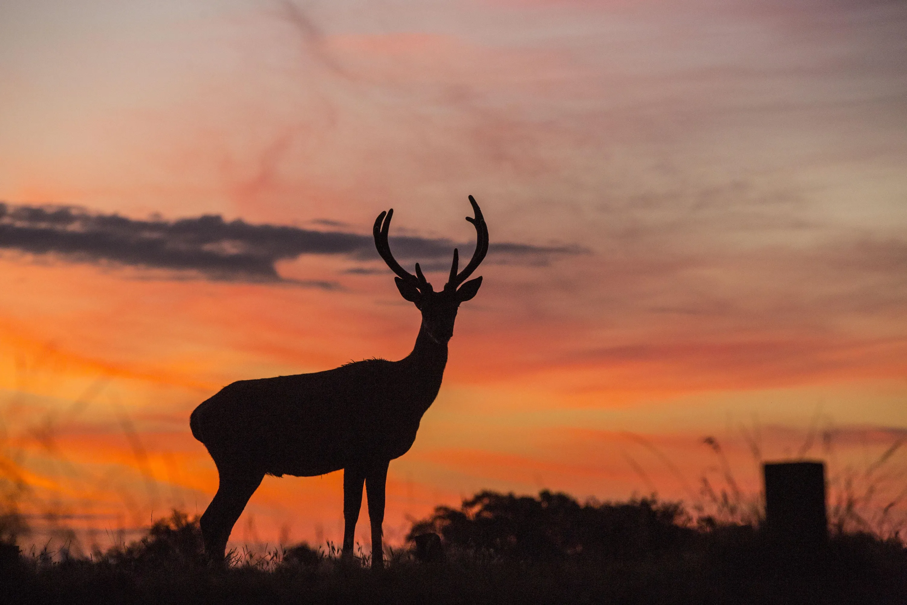 A stag in Richmond Park was imperious in front of the red dawn in London, England on July 30, 2020. (Photo by Rick Findler/Story Picture Agency)