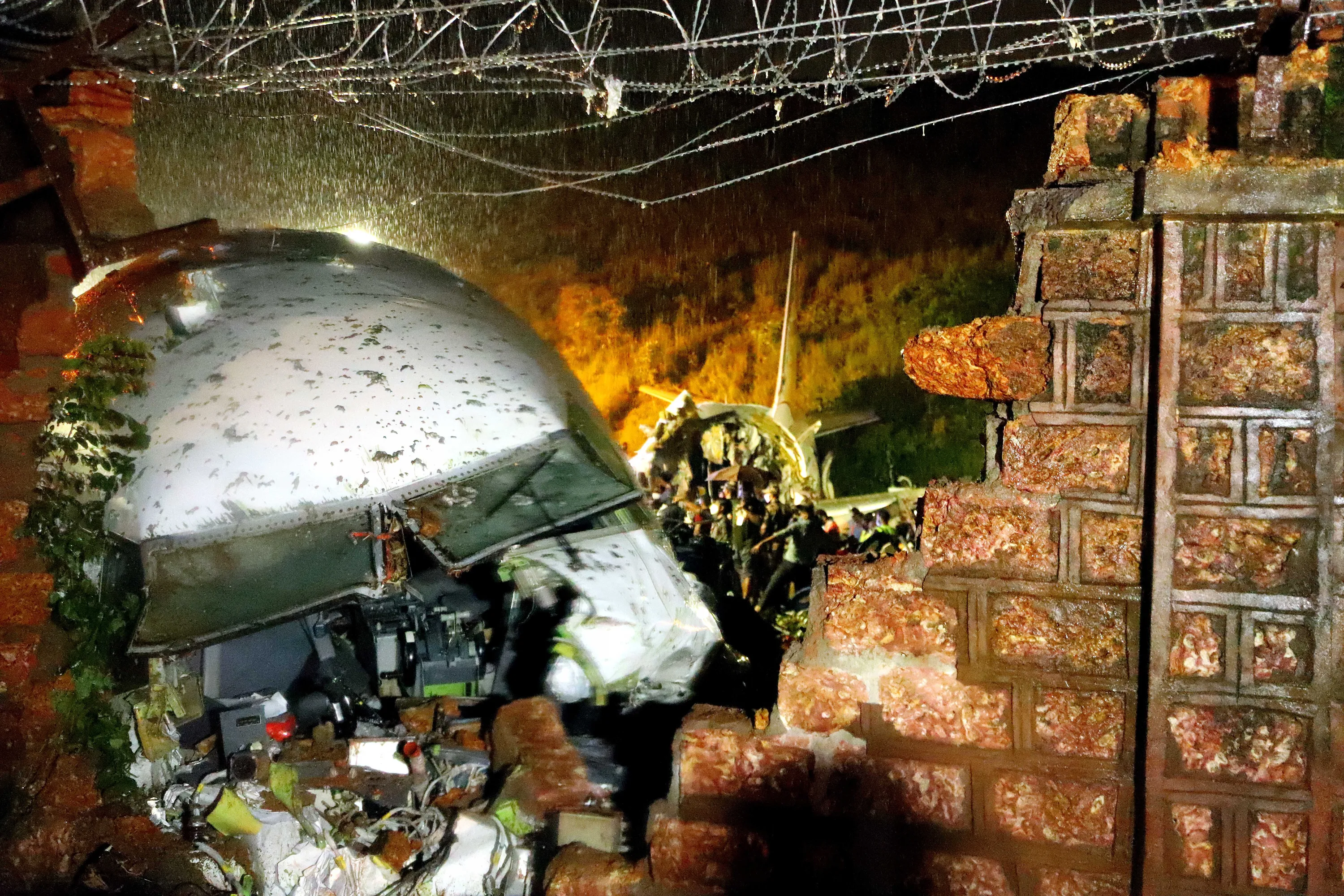 Rescuers work at the plane crashlanding scene at Kozhikode Airport in India's southern state of Kerala, August 7, 2020. The death toll in Friday evening's aircraft crashlanding accident in southern India has risen to 14, with 123 others injured, a local police officer has confirmed. (Photo by Xinhua News Agency)