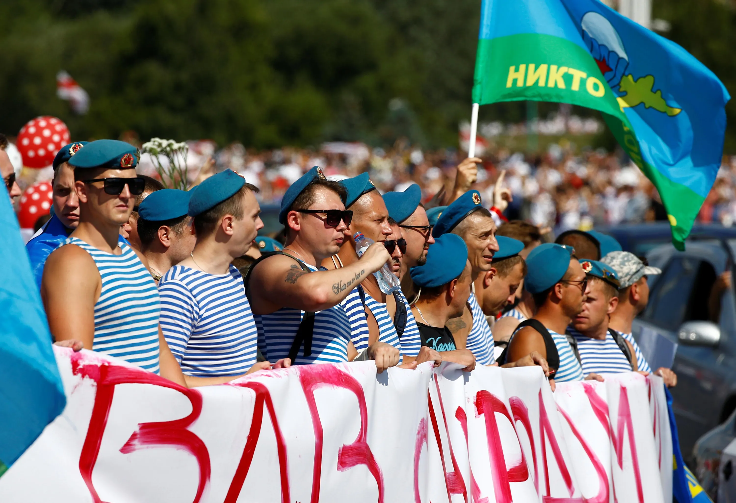 Former Belarusian paratroopers take part in a protest against the presidential election results demanding the resignation of Belarusian President Alexander Lukashenko and the release of political prisoners, in Minsk, Belarus on August 16, 2020. (Photo by Vasily Fedosenko/Reuters)