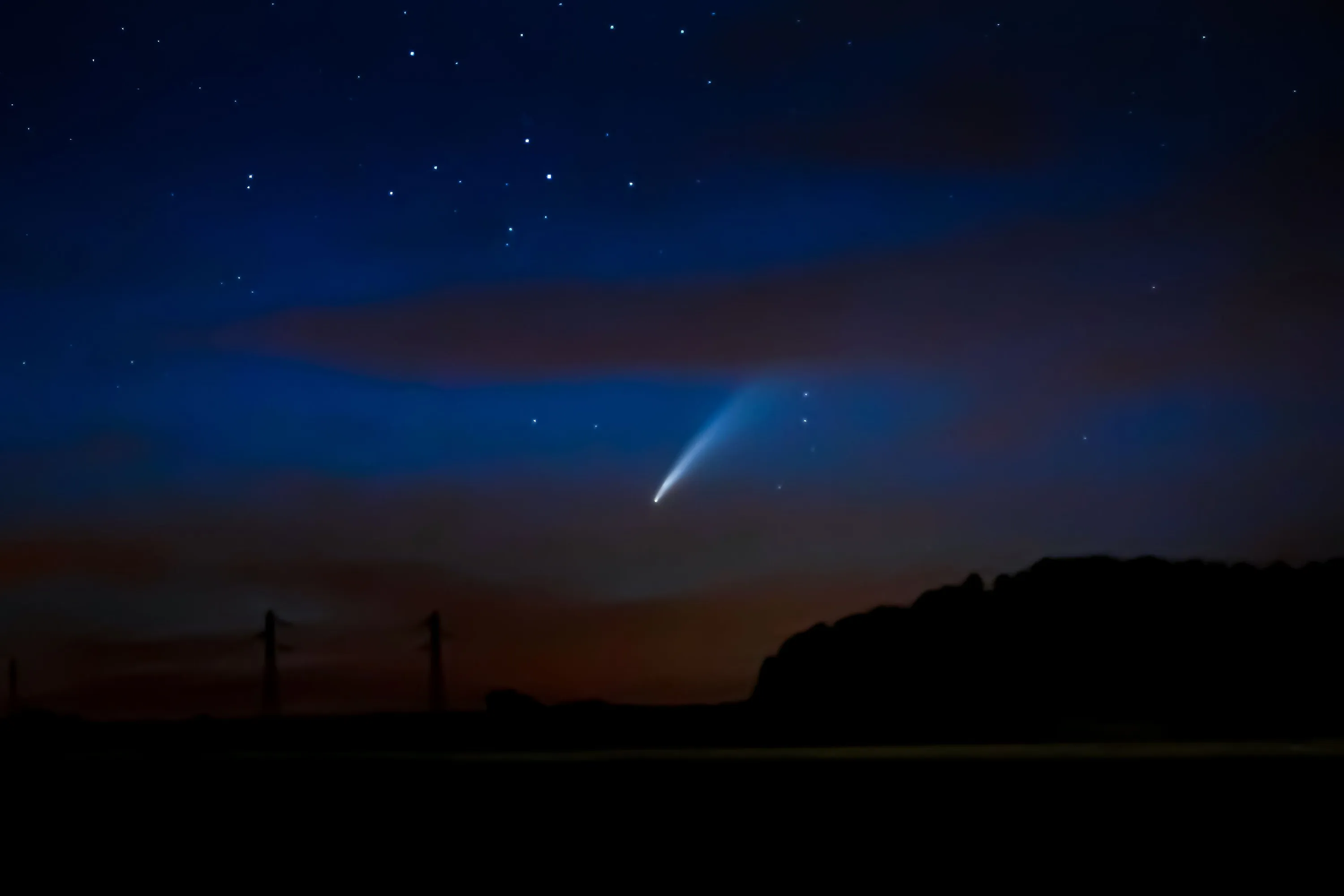 Comet Neowise or C/2020 F3 in the starry sky near Dijon. Comet Neowise was observed the 12 of jully at 23:30 local time and will be increasingly visible in the night in the next days. Every 5000 to 7000 years the comet comes so close to earth that it can be seen with the naked eye. France, Dijon, Jully, 12, 2020. (Photo by Konrad K./SIPA Press)