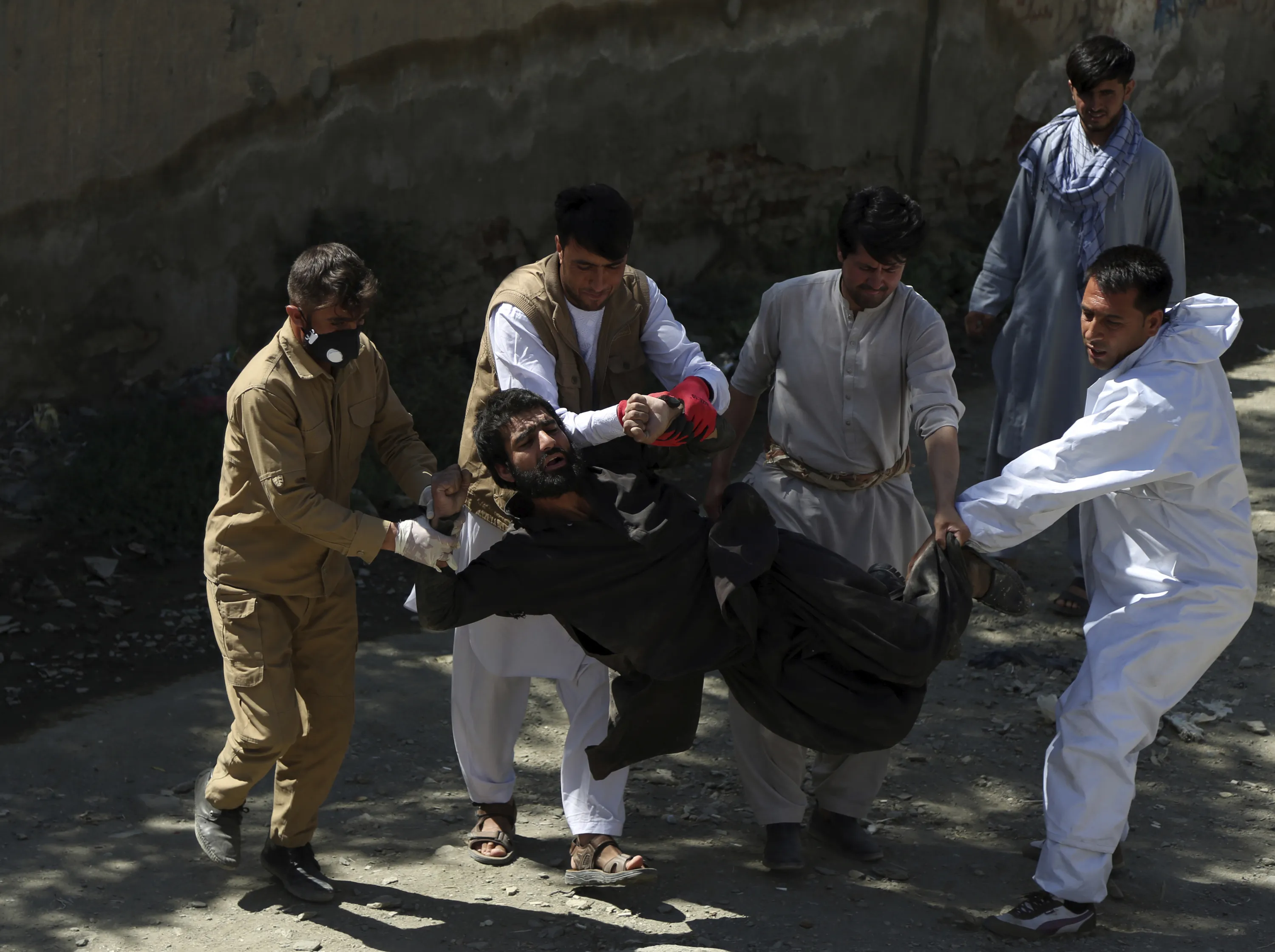 Afghan health workers carry a drug addict during a campaign to transfer addicts to a hospital, on the outskirts of Kabul, Afghanistan, Friday, August 14, 2020. (Photo by Mariam Zuhaib/AP Photo)
