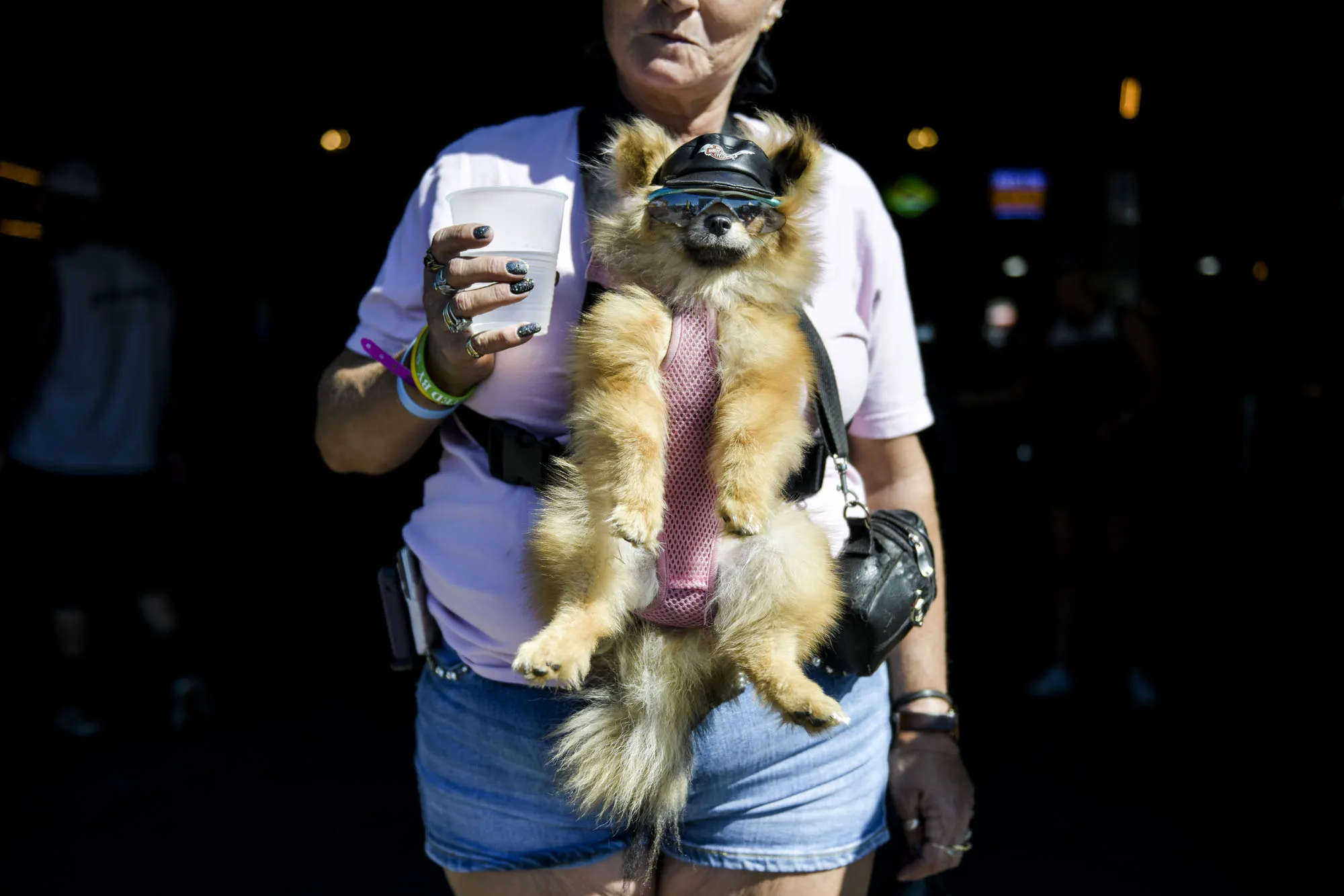 Leo the Pomeranian hangs out at the Big Engine Bar with his owner, Mary Hanson, at the Buffalo Chip during the 80th Annual Sturgis Motorcycle Rally in Sturgis, South Dakota on August 9, 2020. While the rally usually attracts around 500,000 people, officials estimate that more than 250,000 people may still show up to this year's festival despite the coronavirus pandemic. (Photo by Michael Ciaglo/Getty Images)