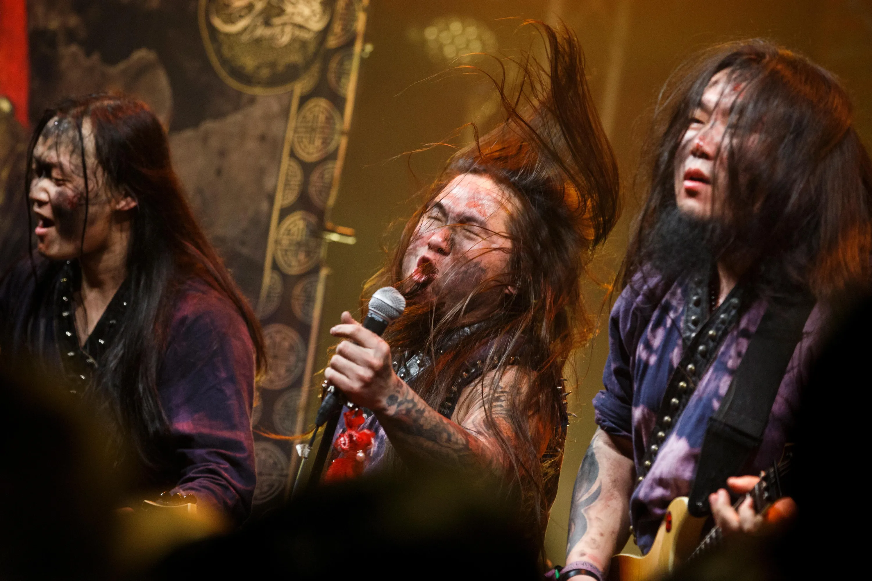 Li Shun, Shun Zi and Wang Bao of the Chinese folk-metal band Dream Spirit (梦灵) perform at the Wukesong Mao livehouse in Beijing, China, February 24, 2019. Six months of coronavirus shutdowns kept the lights off in Beijing's underground music venues, but live venues in Beijing were recently allowed to reopen at 50 percent capacity, as life in China increasingly returns to normal. (Photo by Thomas Peter/Reuters)