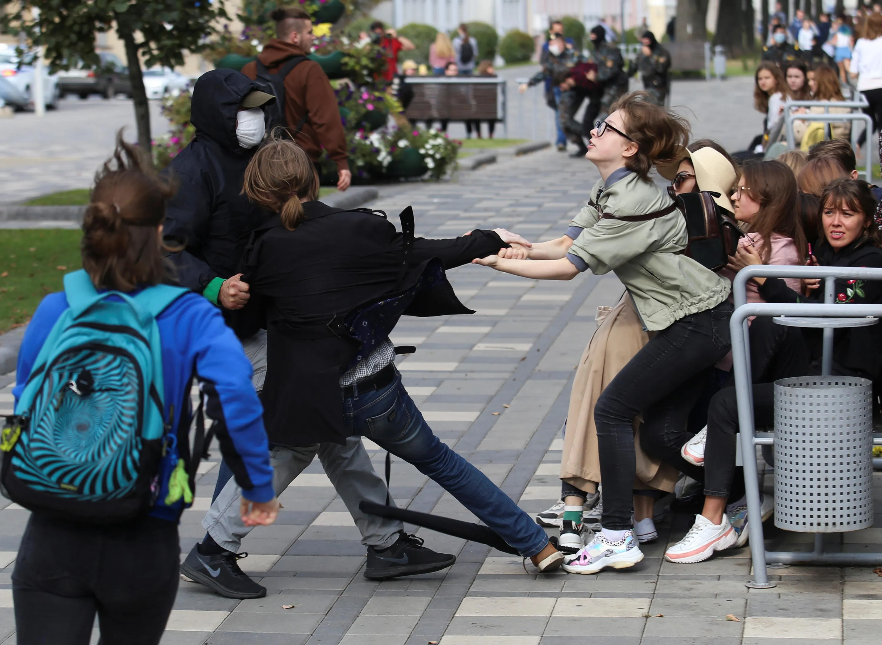 A plainclothes law enforcement officer tries to detain a student during a protest against presidential election results in Minsk, Belarus on September 1, 2020. (Photo by Tut.By via Reuters)