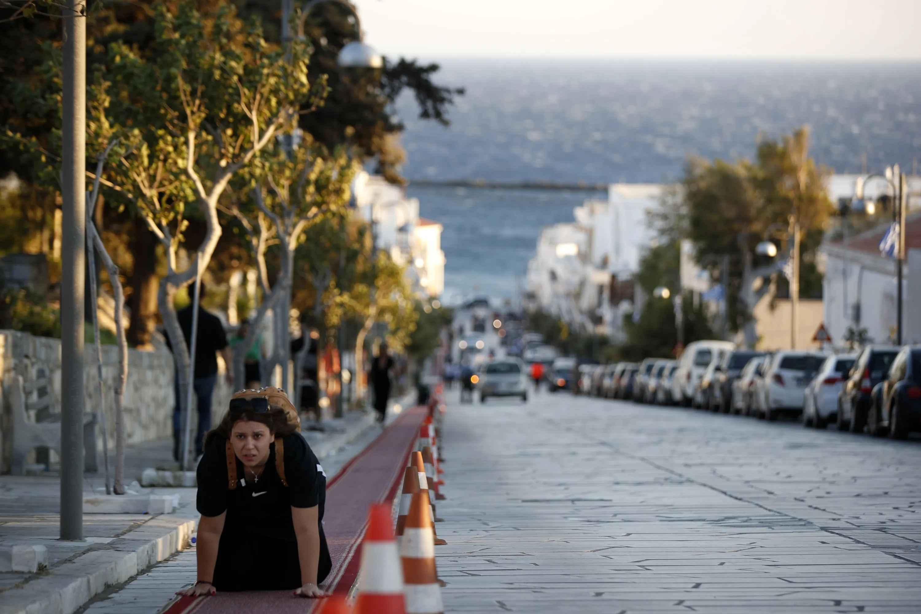 A pilgrim crawls from the port to the Holy Church of Panagia of Tinos, on the Aegean island of Tinos, Greece, on Thursday, August 13, 2020. For nearly 200 years, Greek Orthodox faithful have flocked to Tinos for the August 15 feast day of the Assumption of the Virgin Mary, the most revered religious holiday in the Orthodox calendar after Easter. But this year there was no procession, the ceremony – like so many lives across the globe – upended by the coronavirus pandemic. (Photo by Thanassis Stavrakis/AP Photo)