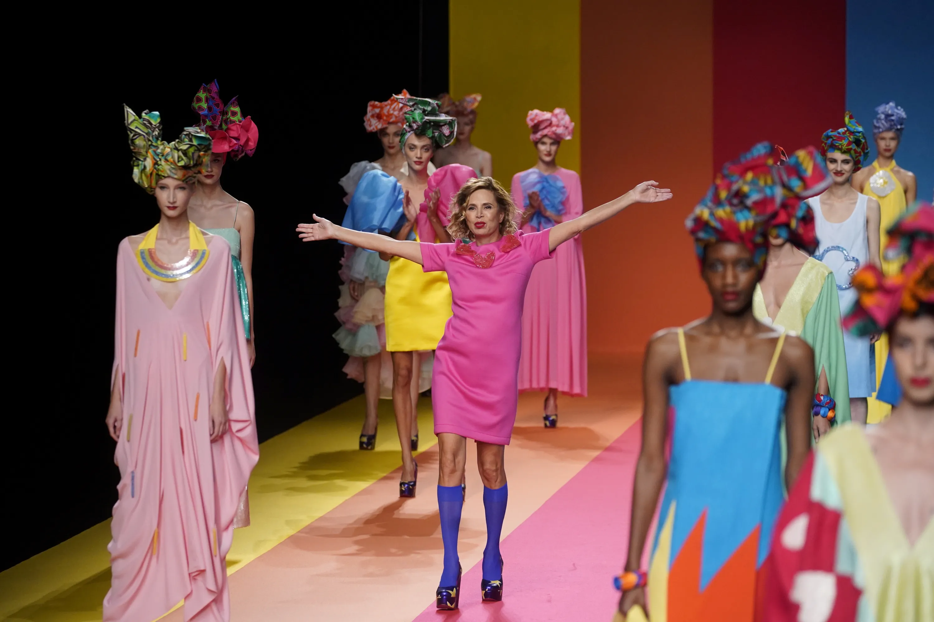 Spanish designer Agatha Ruiz de la Prada appears at the end of her collection show during the Mercedes Benz Fashion Week, amid the coronavirus disease (COVID-19) outbreak, in Madrid, Spain, September 10, 2020. (Photo by Juan Medina/Reuters)