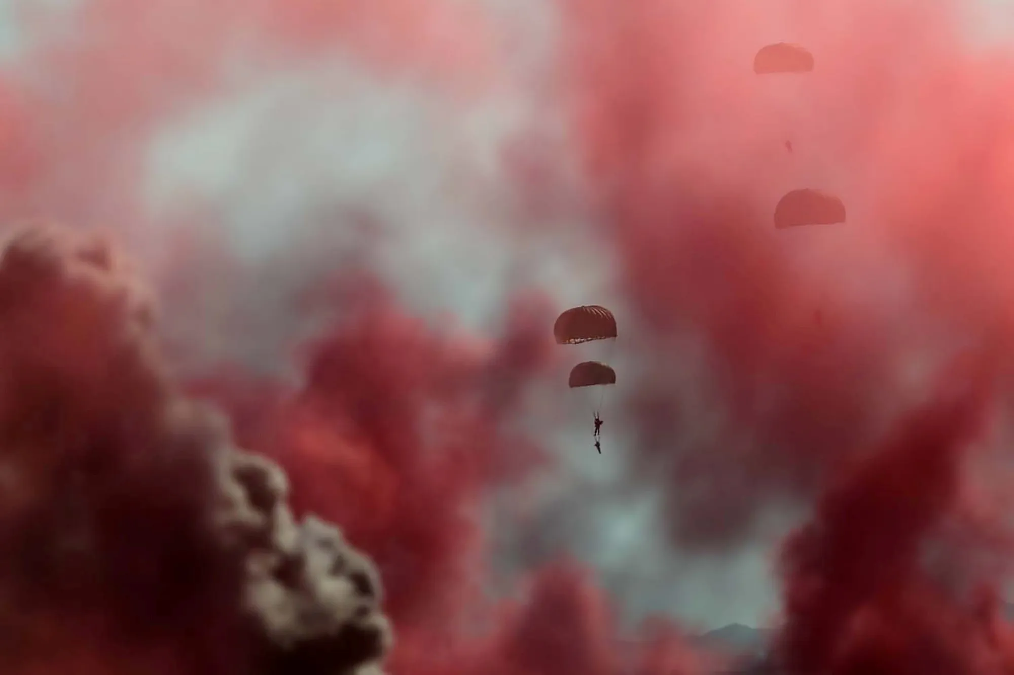 Member of the Iranian army paratroopers take part in the annual military drill, dubbed “Zolphaghar 99”, in the Gulf of Oman, Iran on September 8, 2020. (Photo by WANA (West Asia News Agency) via Reuters)