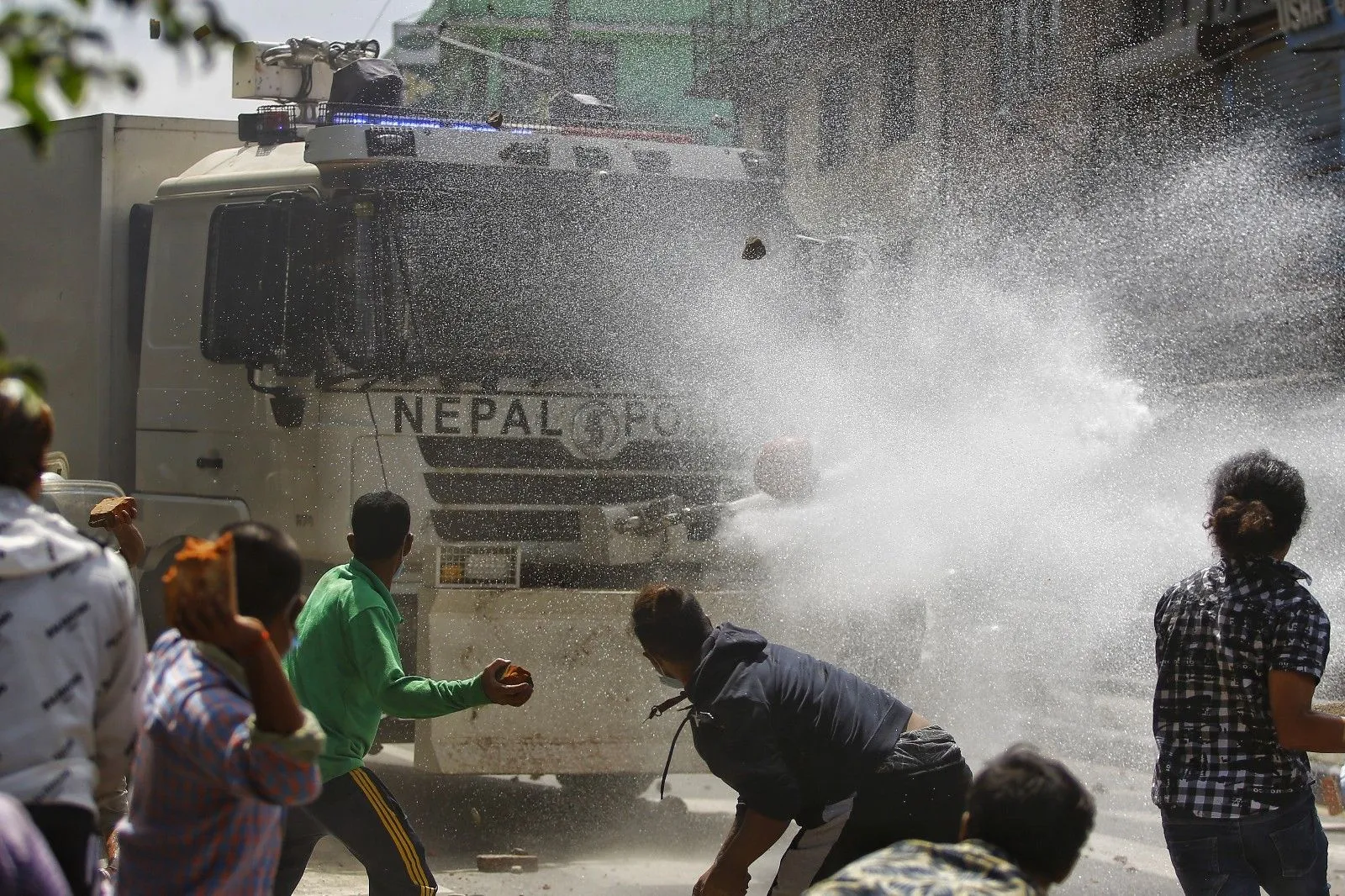 Local people attack a police water cannon truck during a clash between the devotees and police in Lalitpur, Nepal, on Sept. 3, 2020. Nepalese police interrupted the chariot festival of Rato Machhindranath amid the ban on public and religious gatherings to control the spread of COVID-19. (Photo by Chine Nouvelle/SIPA Press/Rex Features/Shutterstock)