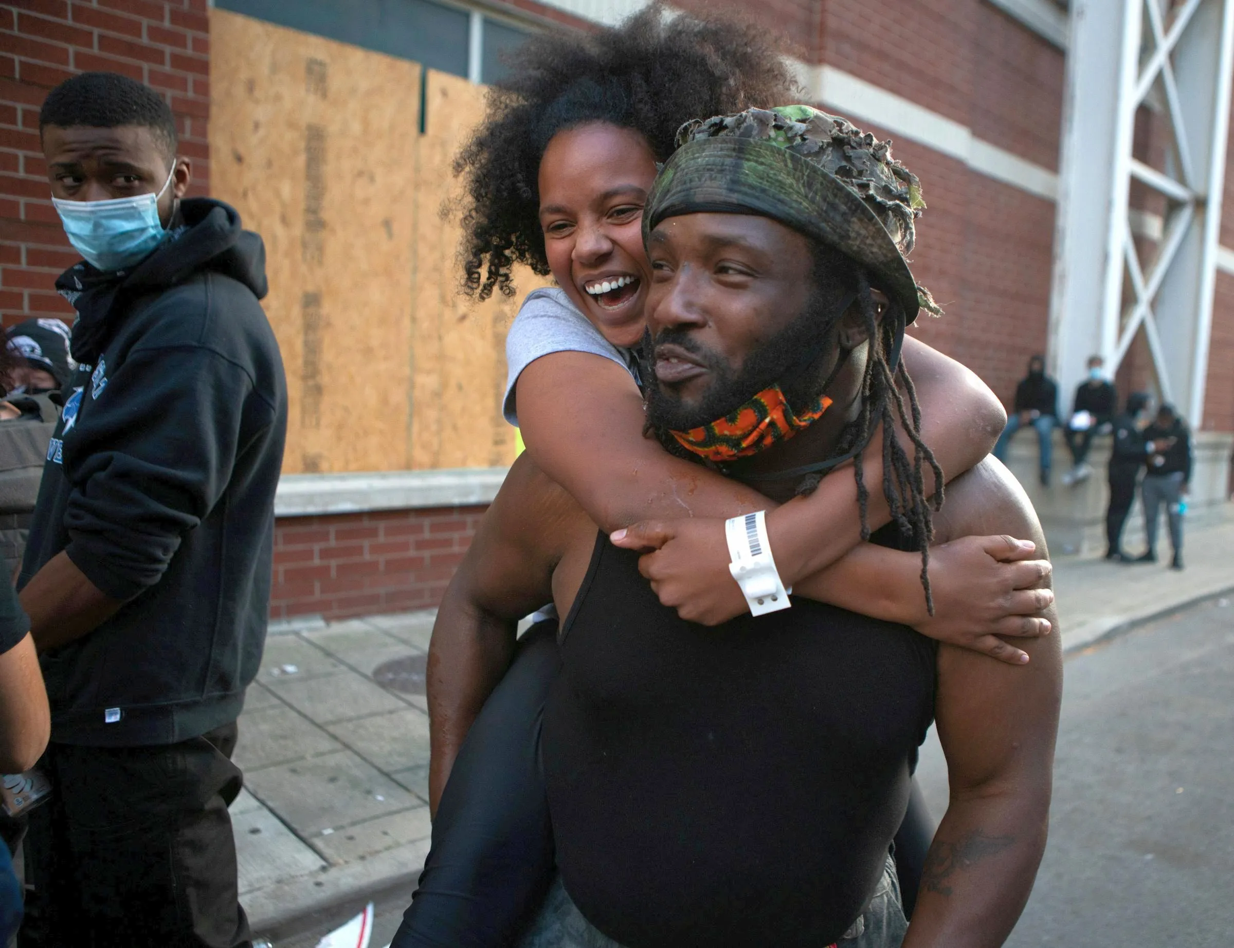 A woman celebrates after she was released from jail a day after a grand jury decided not to bring homicide charges against police officers involved in the fatal shooting of Breonna Taylor in her apartment, in Louisville, Kentucky, U.S. September 24, 2020. (Photo by Lawrence Bryant/Reuters)