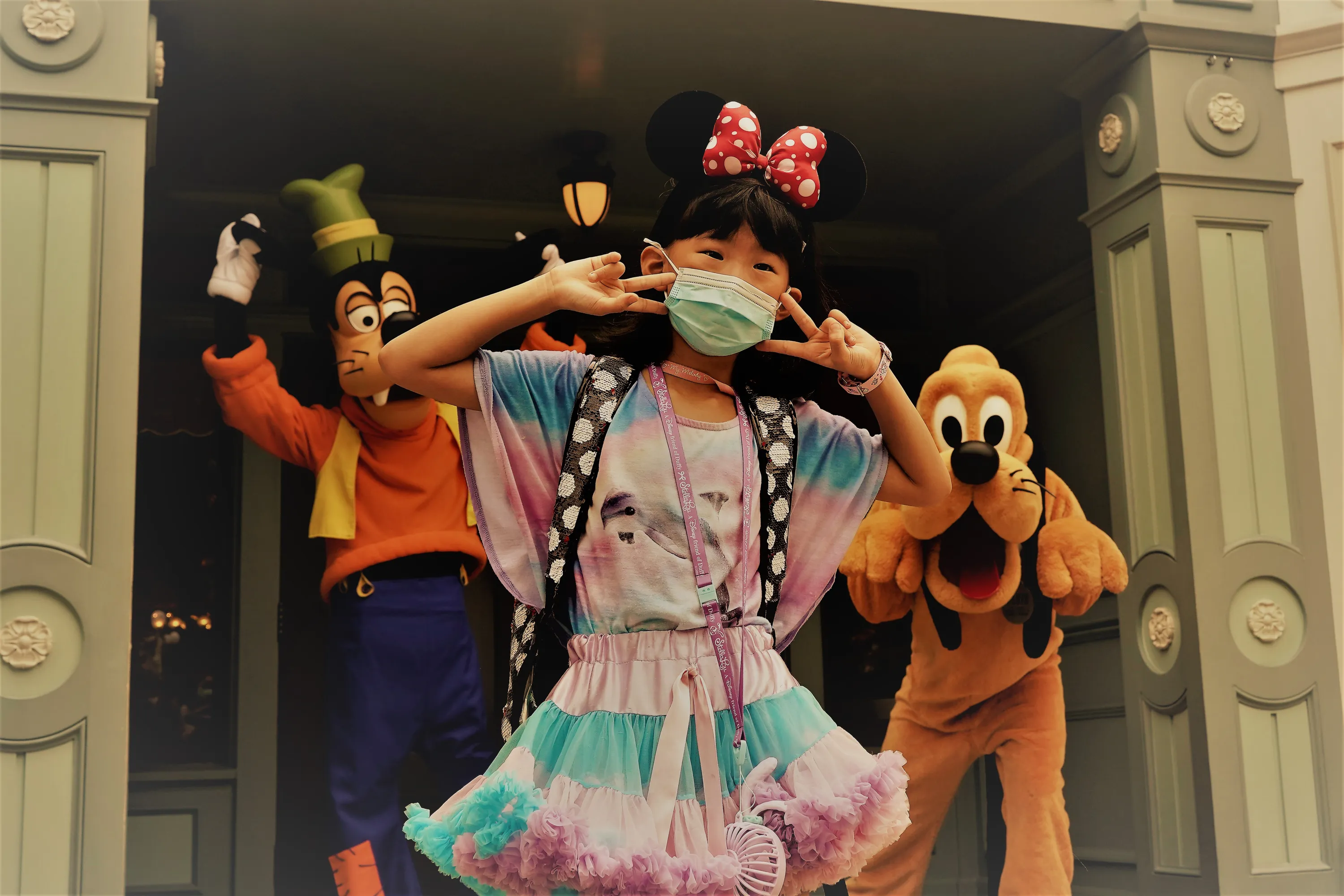 A visitor wearing a face mask take a selfie with the iconic cartoon characters Goofy and Pluto at the Hong Kong Disneyland, Friday, September 25, 2020. Hong Kong Disneyland reopened its doors to visitors after closed temporarily due to the coronavirus outbreak. (Photo by Kin Cheung/AP Photo)