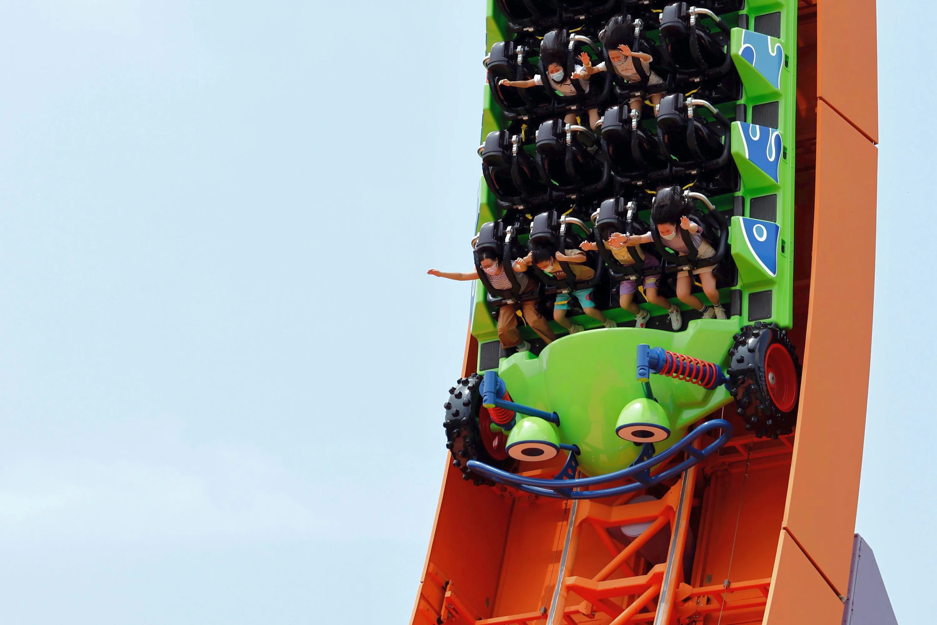 Visitors wear face masks on a ride during the reopening of Disneyland to the public, after a second closure due to the coronavirus disease (COVID-19) outbreak, in Hong Kong, China on September 25, 2020. (Photo by Tyrone Siu/Reuters)