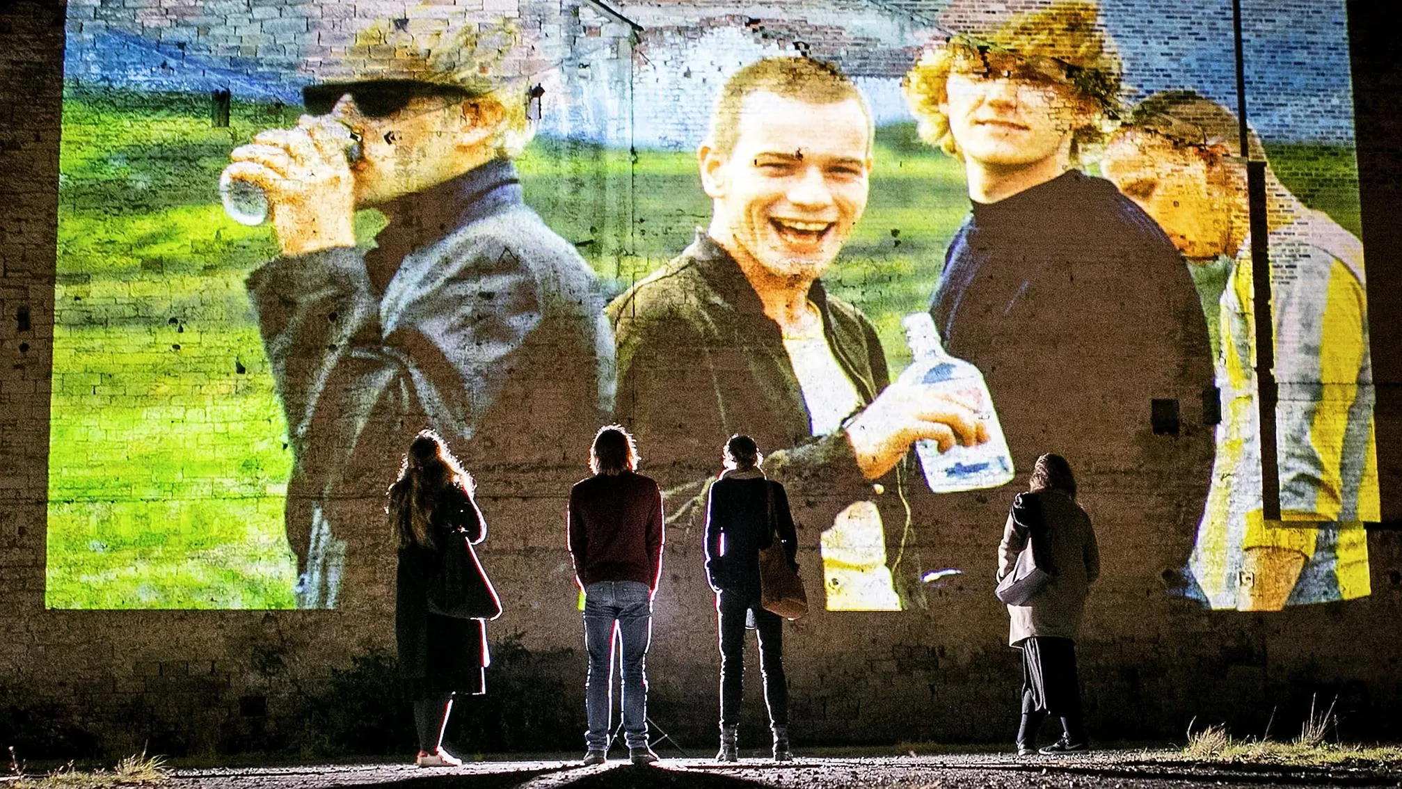 Images from the films Trainspotting and The Illusionist, both set in Edinburgh, are projected onto a derelict site by Double Take Projections in Leith, Edinburgh, Scotland on September 29, 2020, during a test screening for Cinescapes. (Photo by Jane Barlow/PA Images via Getty Images)
