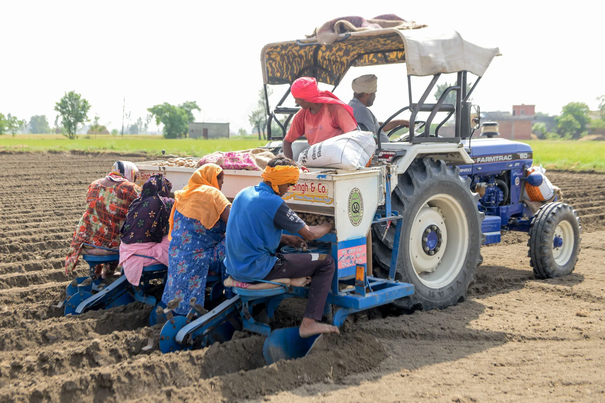 Farm labourers plant seed potatoes in a field on the outskirts of Amritsar on September 27, 2020. (Photo by Narinder Nanu/AFP Photo)
