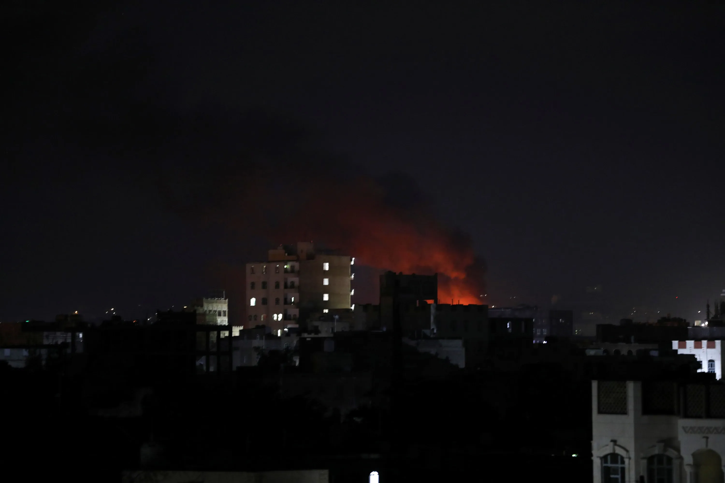 Fire is seen at the site of Saudi-led air strikes in Sanaa, Yemen on September 13, 2020. (Photo by Khaled Abdullah/Reuters)