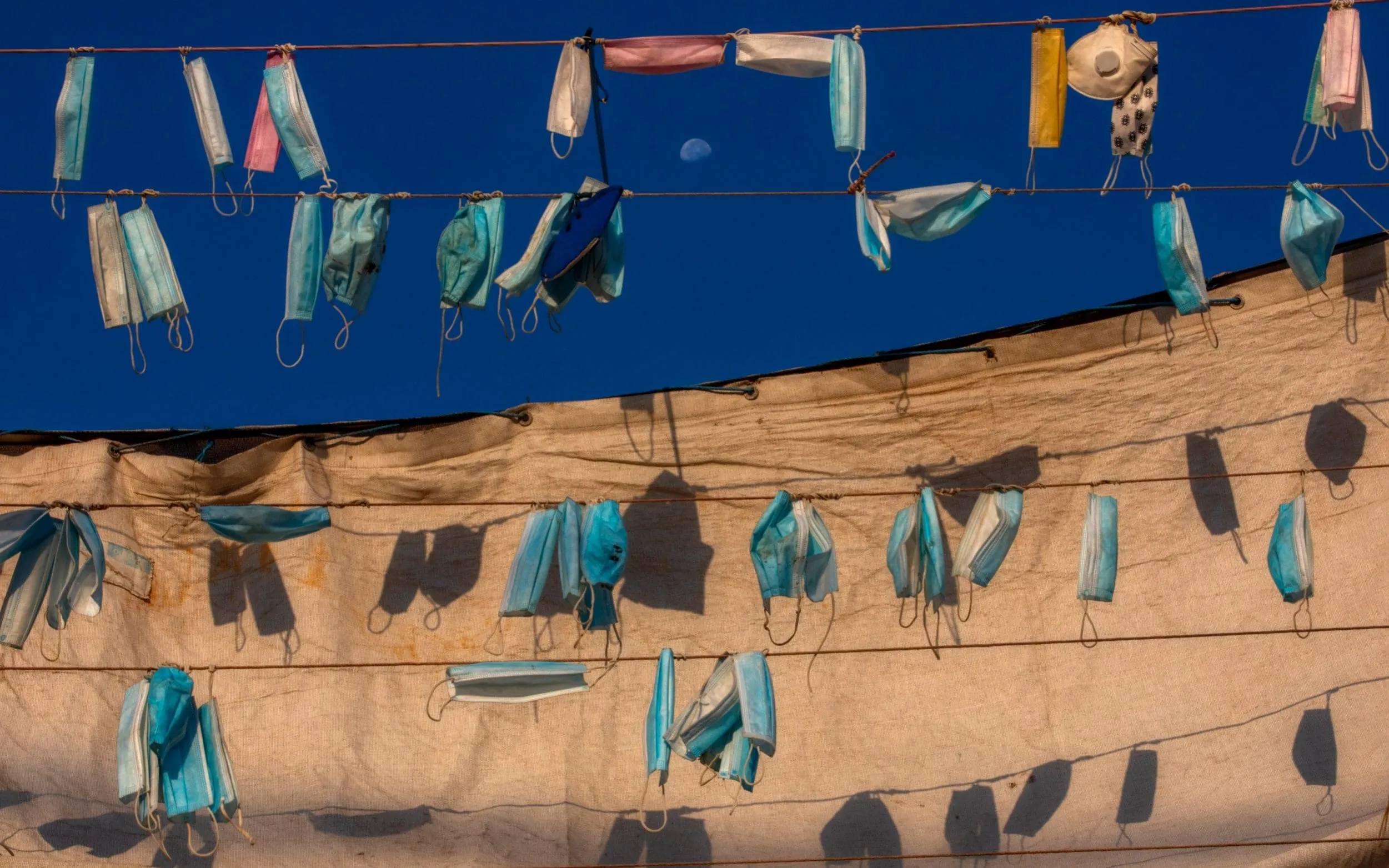 Face masks hang on a boat during a nationwide lockdown to curb the spread of the coronavirus, at the port in the mixed Arab Jewish city of Jaffa, near Tel Aviv, Israel, Wednesday, October 7, 2020. (Photo by Oded Balilty/AP Photo)