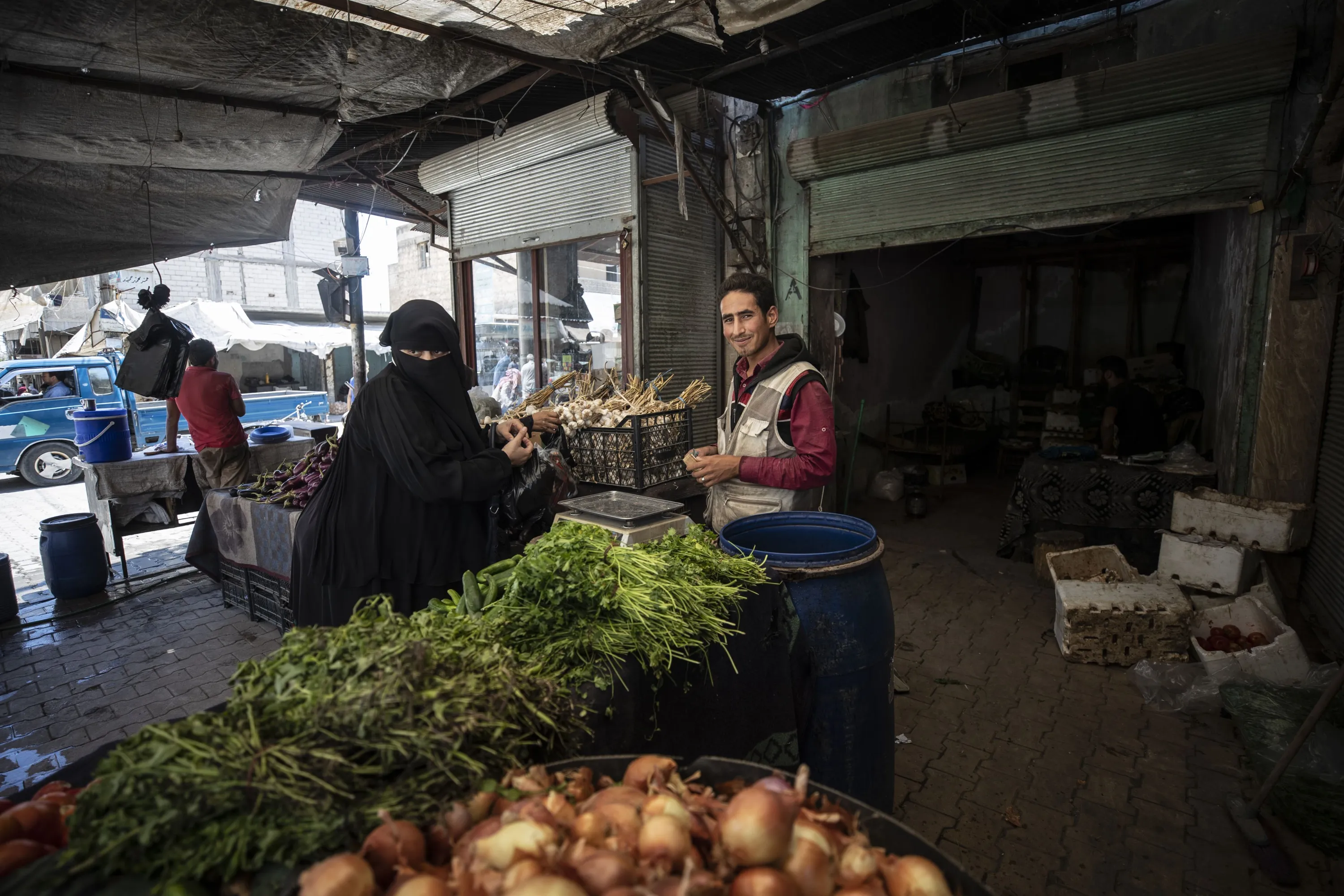 A fruit seller is seen in town center in Syria's Jarabulus, which was liberated from terrorists within the Operation Euphrates Shield, on August 13, 2020. Syrian shopkeepers in Jarabulus lead a normal life in peace as they continue to work in the shops in the central market. (Photo by Esra Hacioglu/Anadolu Agency via Getty Images)