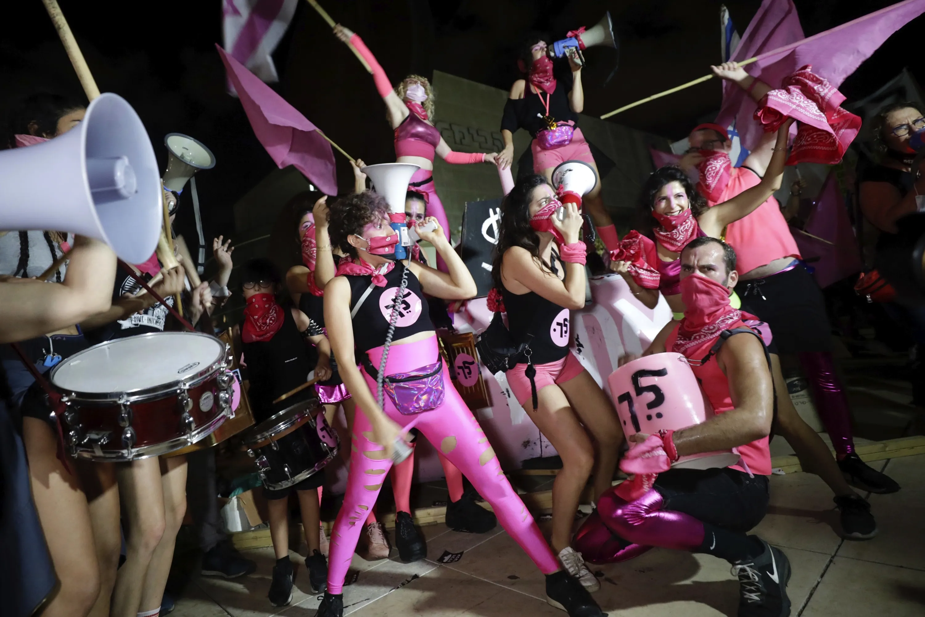 Israeli protesters wave flags and chant slogans during a demonstration against Israeli Prime Minister, Benjamin Netanyahu in Tel Aviv, Israel, Saturday, October 10, 2020. (Photo by Sebastian Scheiner/AP Photo)