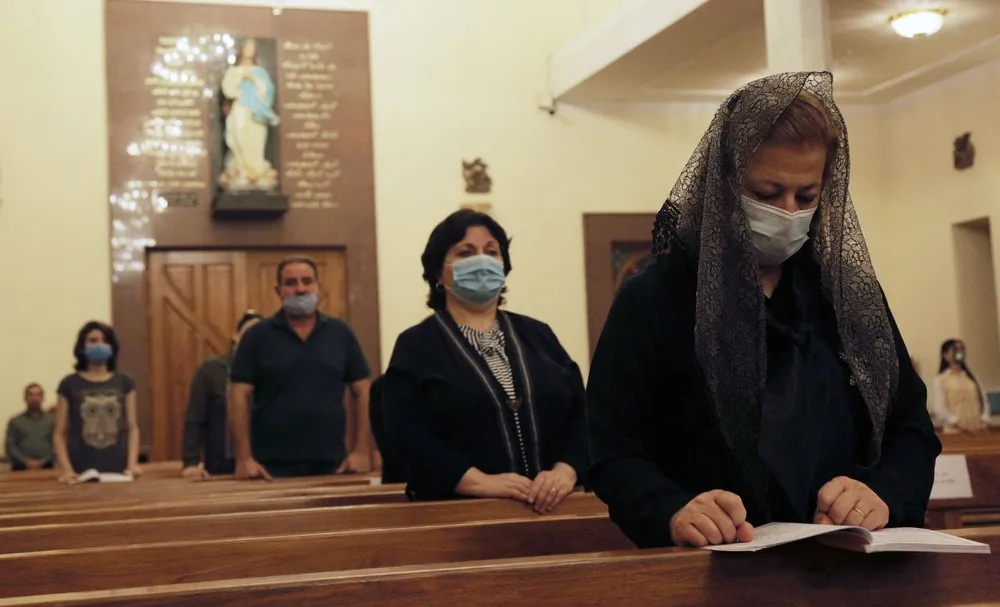 Christians attend a Sunday service in one of the Chaldean churches that reopened after months of closure due to the coronavirus disease (COVID-19) outbreak, in Baghdad, Iraq on October 11, 2020. (Photo by Teba Sadiq/Reuters)