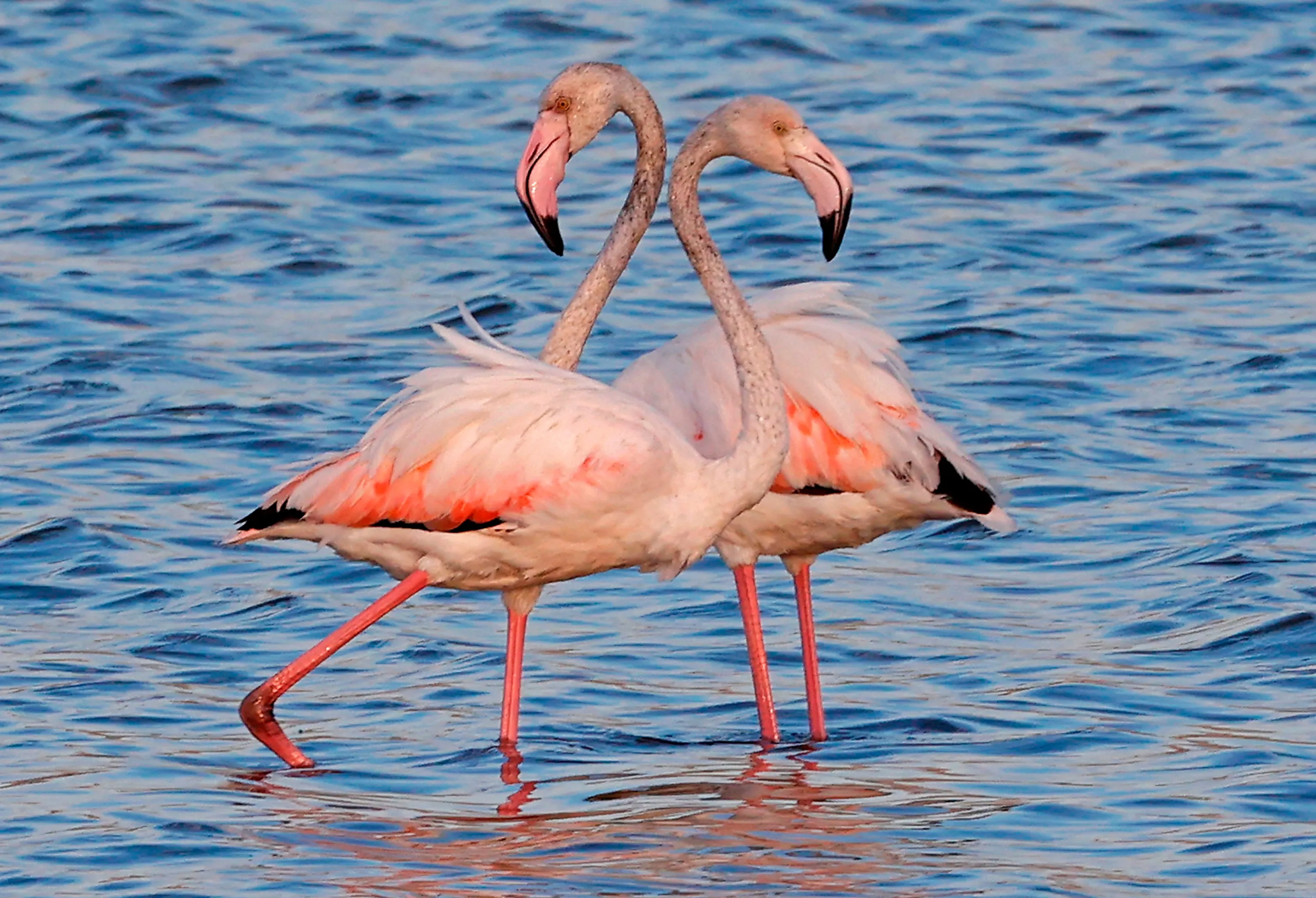 Flamingos (aka Phoenicopterus Roseus) are pictured at a reservoir in Atlit, north of Tel Aviv on October 13, 2020. Flamingos pass through Israel on their way to Africa then again when they return to Europe in the summer. (Photo by Jack Guez/AFP Photo)
