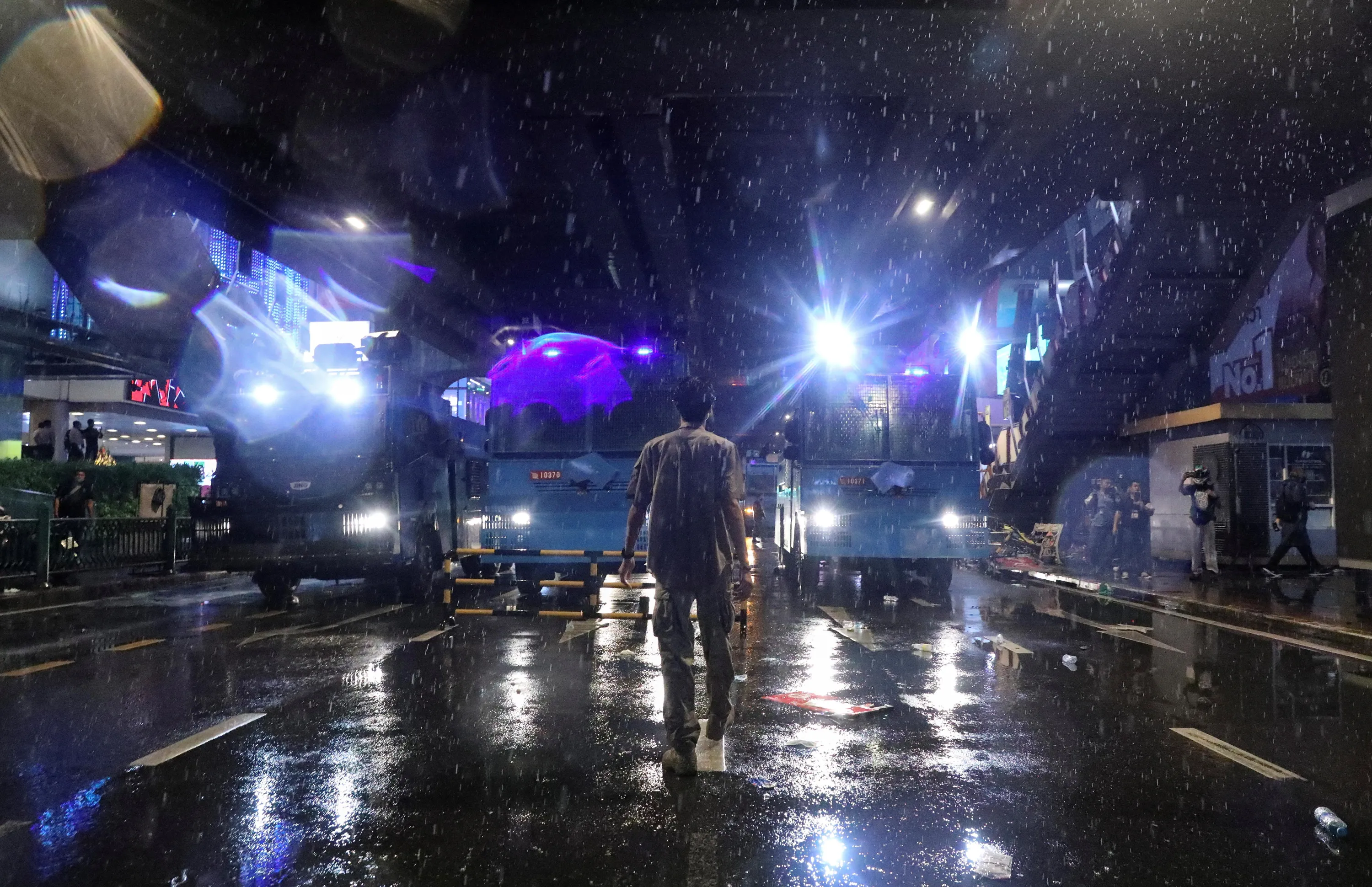 A man walks in the middle of the road during anti-government protests, in Bangkok, Thailand on October 16, 2020. (Photo by Soe Zeya Tun/Reuters)