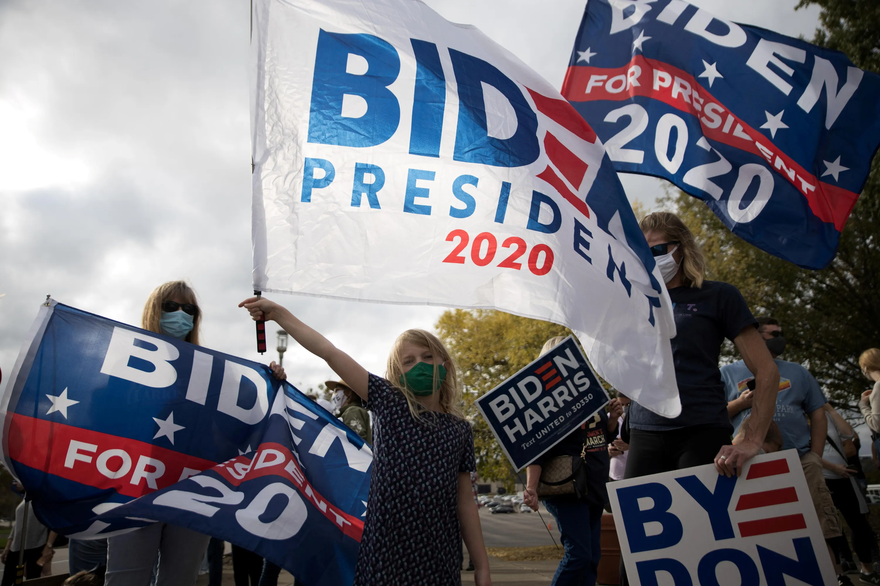 Biden supporters gather outside of a campaign event held by U.S. Democratic presidential candidate Joe Biden in Cincinnati, Ohio, U.S., October 12, 2020. (Photo by Megan Jelinger/Reuters)