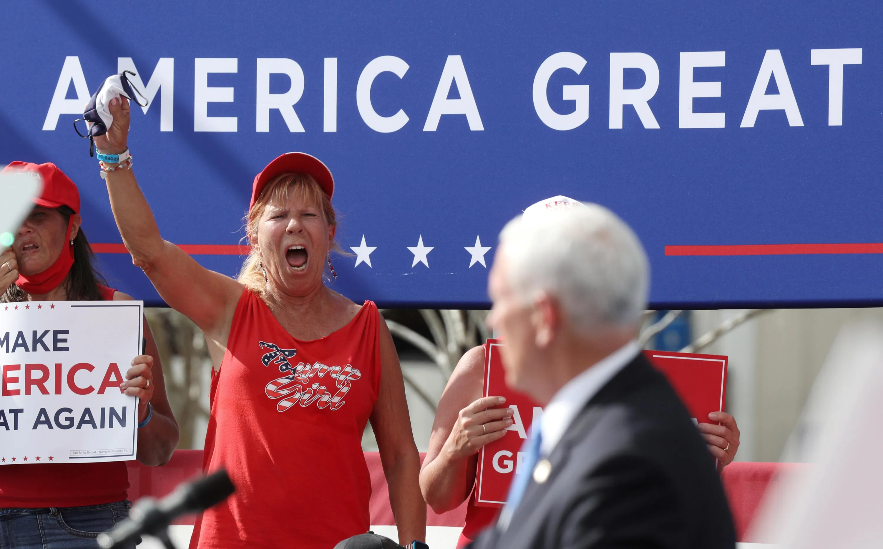 U.S. Vice President Mike Pence speaks to residents at The Villages, a retirement community located north of Orlando, Florida, U.S., October 10, 2020. (Photo by Gregg Newton/Reuters)
