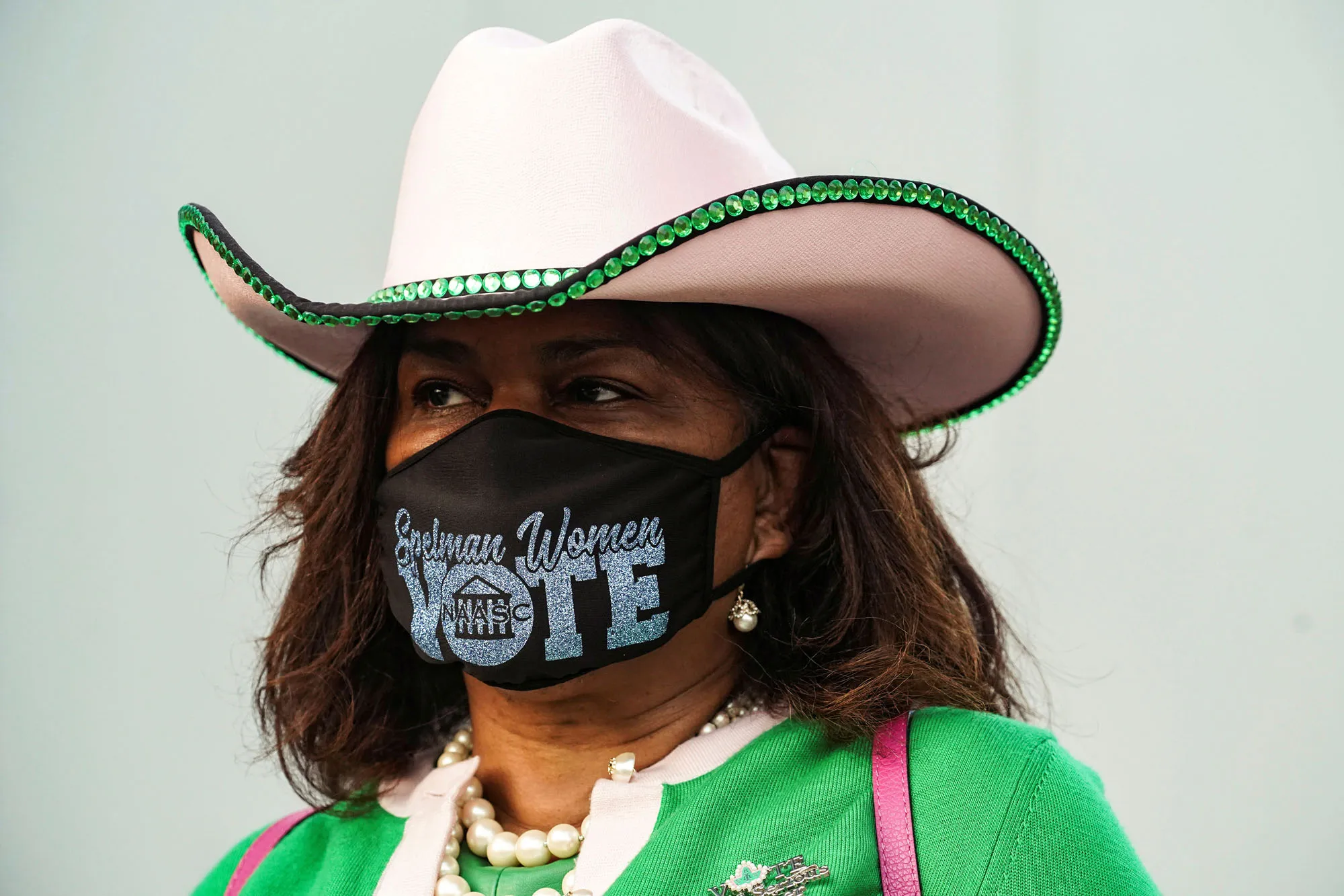 Deirdre Barrett wears a protective mask as she waits in line to cast her ballot for the upcoming presidential election as early voting begins in Houston, Texas, U.S., October 13, 2020. (Photo by Go Nakamura/Reuters)