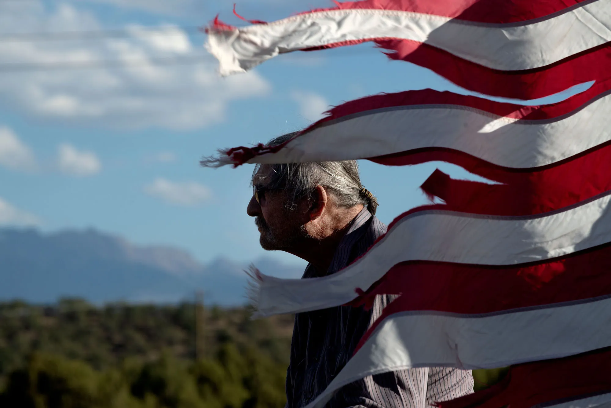Bill Marlatt of Ridgeway, Colorado listens as Lauren Boebert, the Republican candidate for the US House of Representatives seat in Colorado's 3rd Congressional District, holds a campaign rally in Colona, Colorado on October 10, 2020. Boebert's meteoric rise into politics began in September 2019 when she confronted US Democratic presidential candidate Beto ORourke at a campaign rally and stated “Hell no, youre not!” to his proposed mandatory buyback of both AR-15 and AK-47 semi-automatic weapons. With her “Pro-Freedom, Pro-Guns, Pro-Constitution, Pro-Energy, Pro-Life, Pro-Colorado, Pro-America” platform, Boebert defeated 5-term incumbent US Rep. Scott Tipton in Colorado's GOP primary, and is now challenged by former Colorado state lawmaker Democratic candidate Diane Mitsch Bush. A win by Boebert in the November election, would keep Colorado's 3rd Congressional District in the GOP hands. Colorado's 3rd Congressional District which encompasses 29 counties and represents 47 percent of Colorado's geographic territory is the 15th-largest district in the US. (Photo by Jason Connolly/AFP Photo)