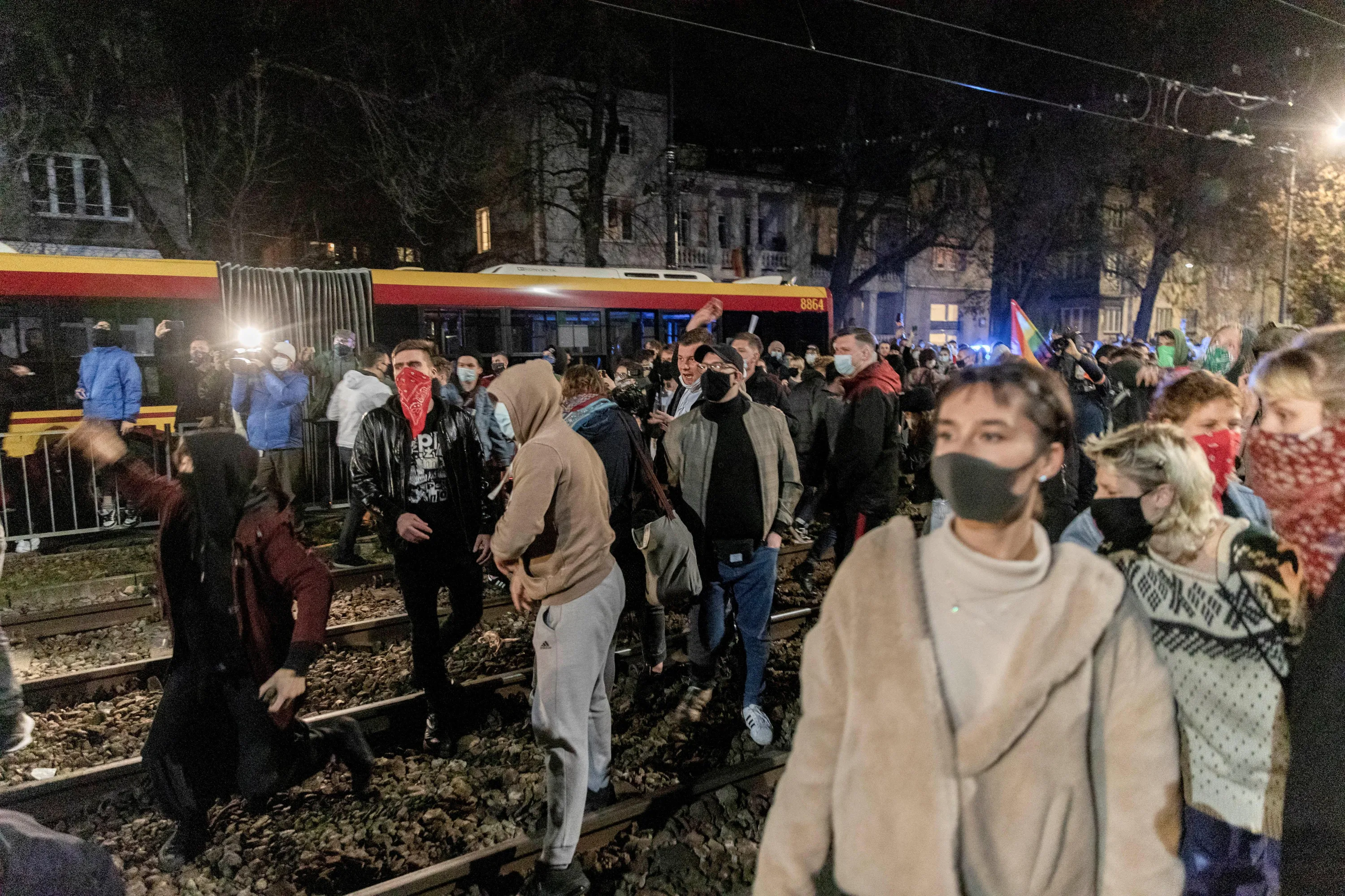 People block a street near the house of Law and Justice leader Jaroslaw Kaczynski during a protest against imposing further restrictions on abortion law in Warsaw, October 23, 2020. (Photo by Jedrzej Nowicki/Agencja Gazeta via Reuters)