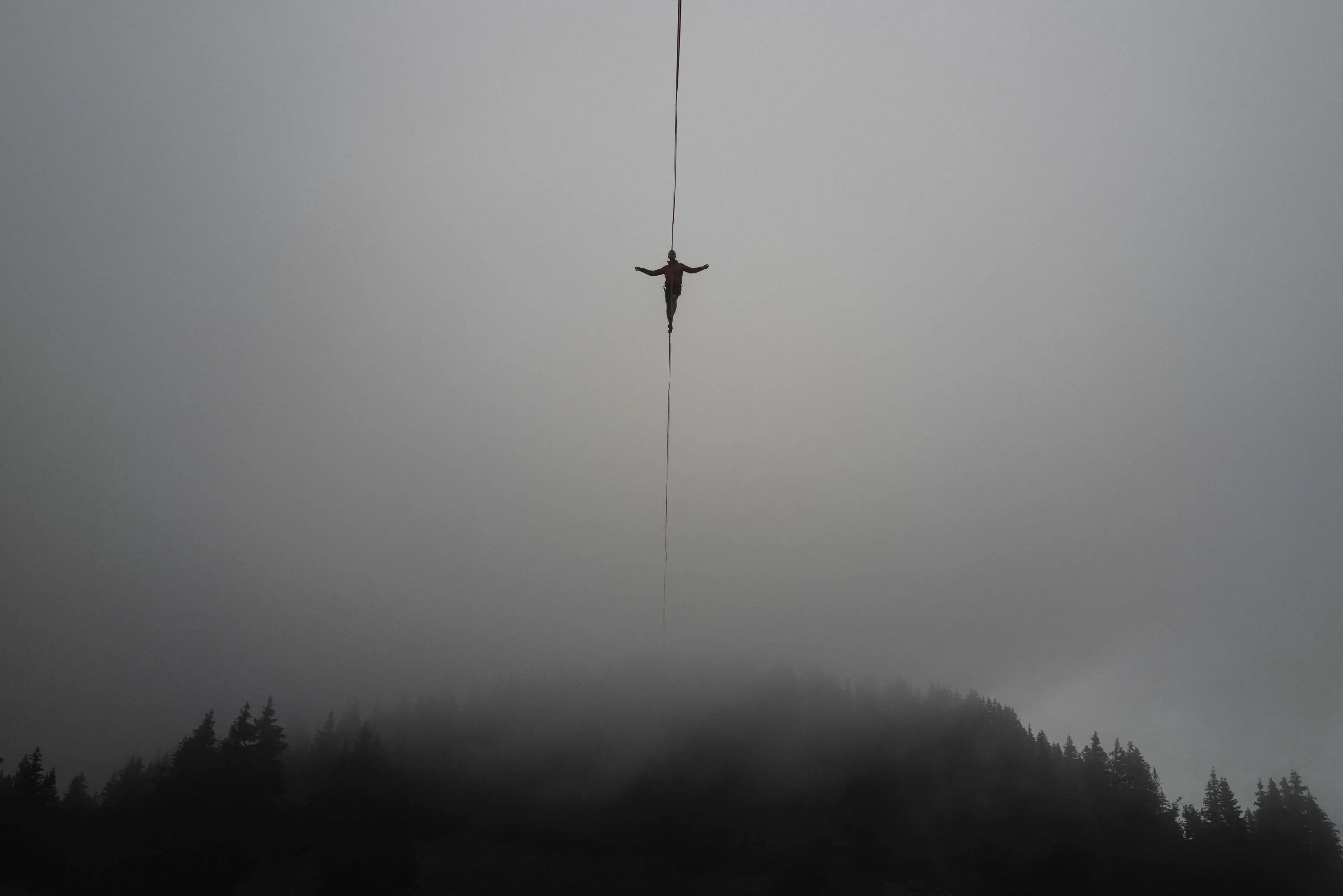 French artist Nathan Paulin performs on a highline above the Semnoz resort, on July 17, 2020 on the eve of the “La Grande Balade” performance, part of the Festival Annecy Paysage 2020. (Photo by Jeff Pachoud/AFP Photo)