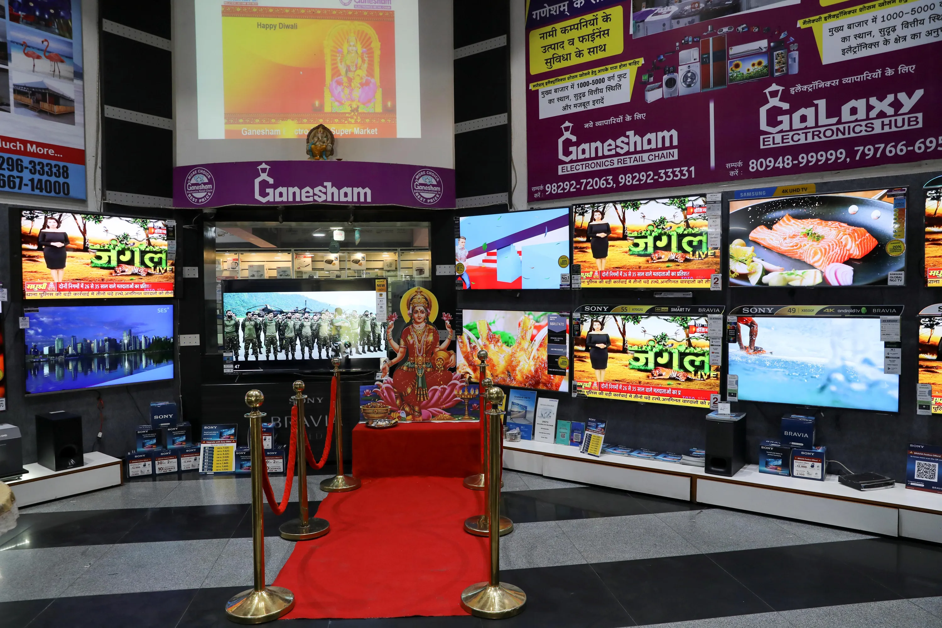 A cutout of the Hindu goddess of wealth and prosperity Lakshmi is seen at an entrance of an electronics and appliances shop in Jaipur, India, October 20, 2020. (Photo by Anushree Fadnavis/Reuters)