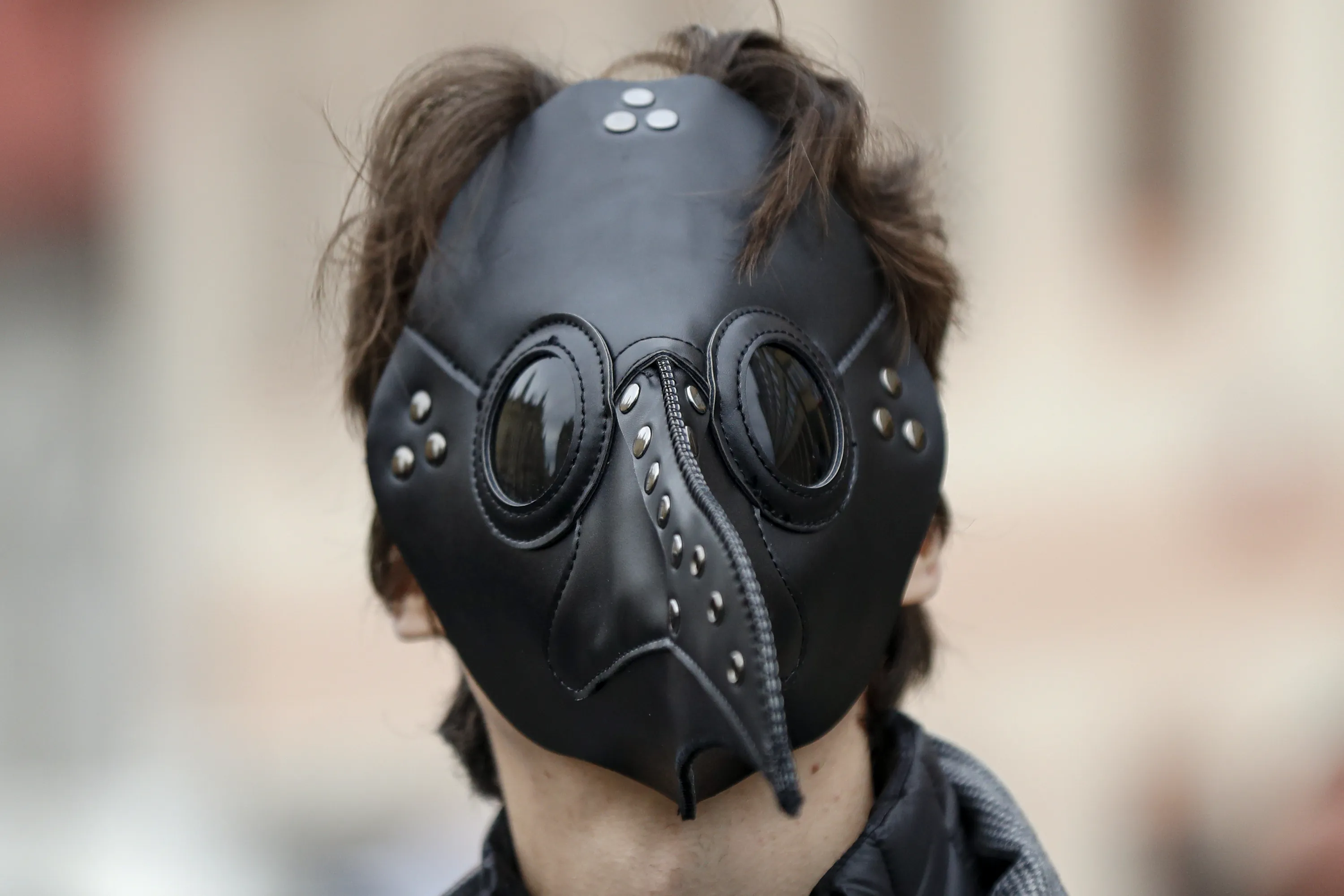 A man wears a mask as demonstrators gather to protest the COVID-19 preventative measures downtown Prague, Czech Republic, Wednesday, October 28, 2020. (Photo by Petr David Josek/AP Photo)