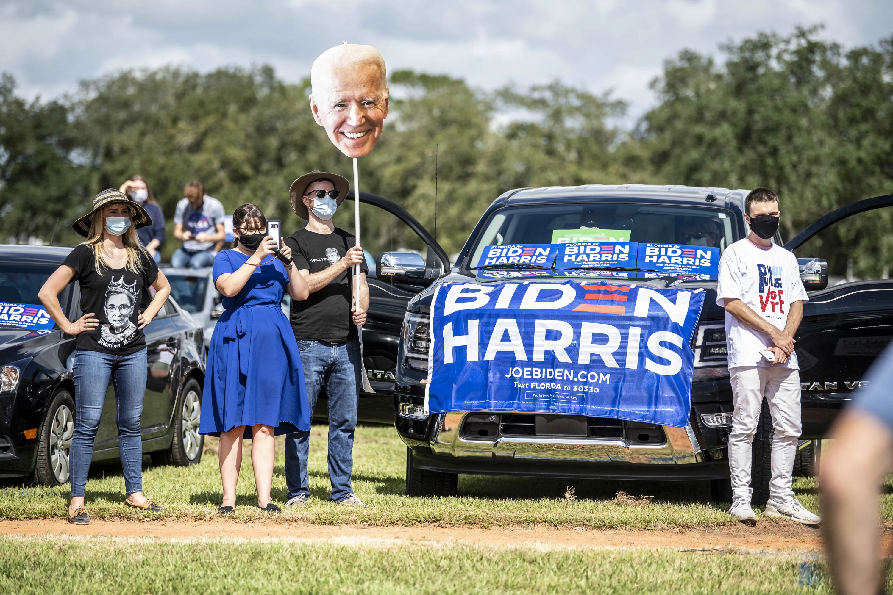 Biden supports listen as Former President Obama speaks during a rally at Tinker Field at Camping World Stadium in Orlando, Florida on October 27, 2020. (Photo by Ben Solomon/Biden for President/ZUMA Wire/Rex Features/Shutterstock)