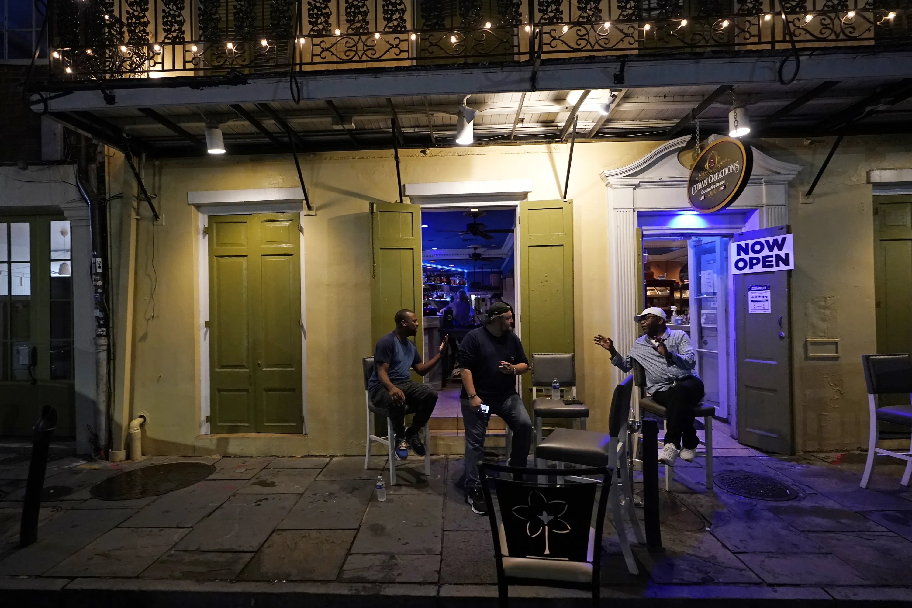 Patrons resume their socializing at Cuban Creations Cigar Bar in the French Quarter in New Orleans, after power was restored Wednesday, October 28, 2020. Hurricane Zeta passed through earlier Wednesday, leaving much of the city and metro area without power. (Photo by Gerald Herbert/AP Photo)