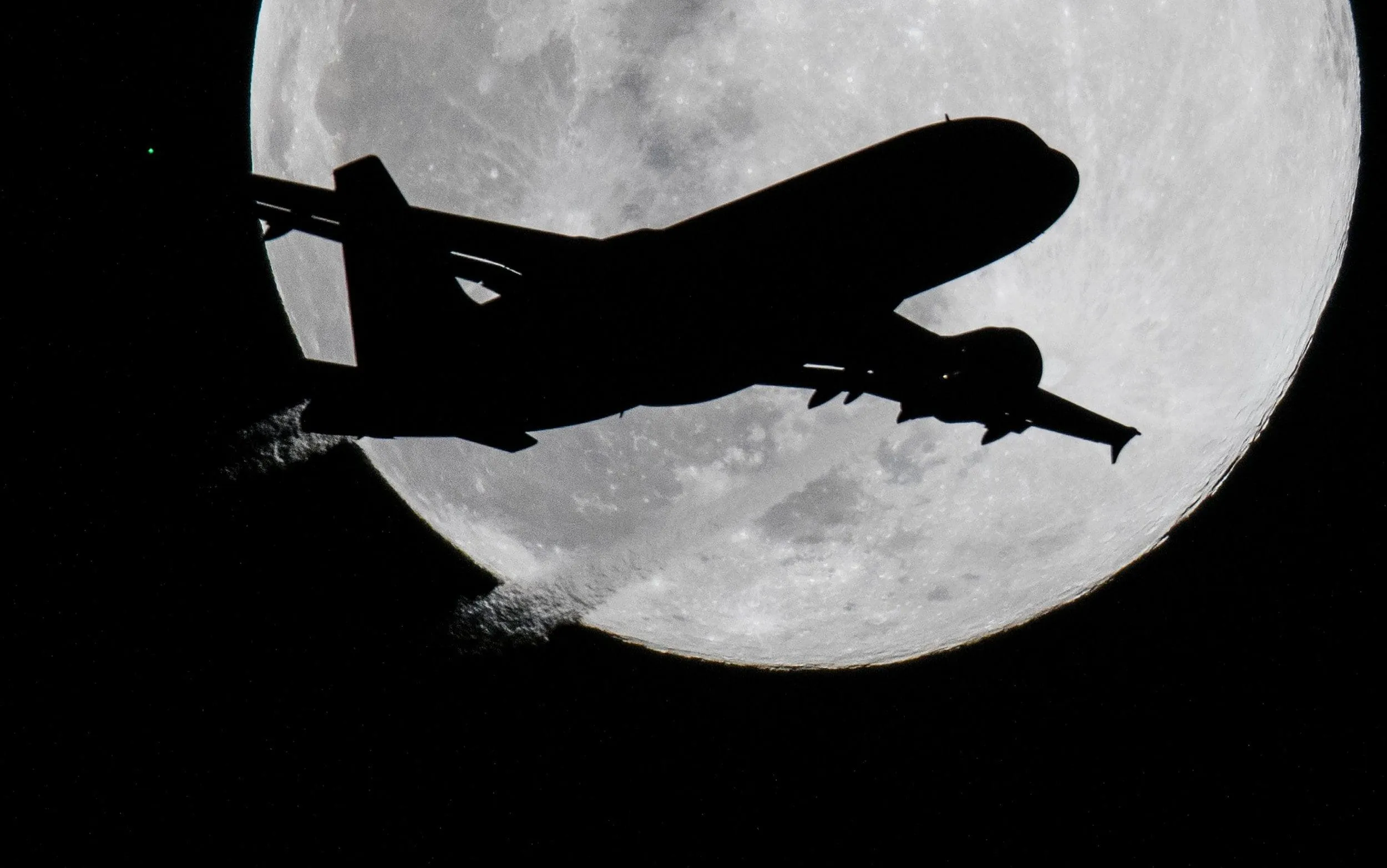 An aircraft approaches Frankfurt Airport, Germany on March 20, 2019, before the full moon for its landing approach. Dry weather in the coming days should also provide a clear view of the sky at night. (Photo by Boris Roessler/dpa)