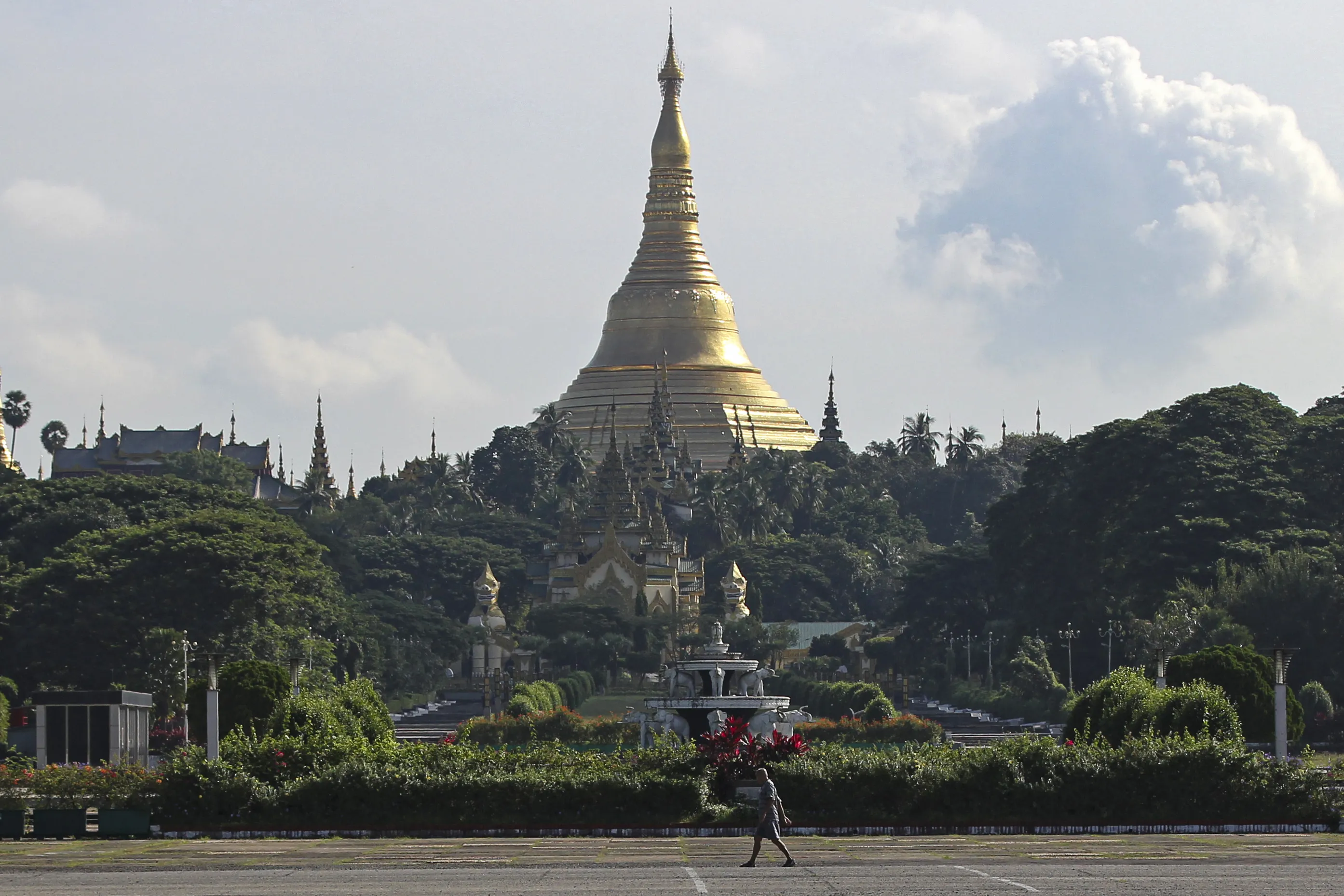 A man takes his morning walk near the Shwedagon pagoda in Yangon, Myanmar, on Thursday, November 5, 2020. (Photo by Thein Zaw/AP Photo)
