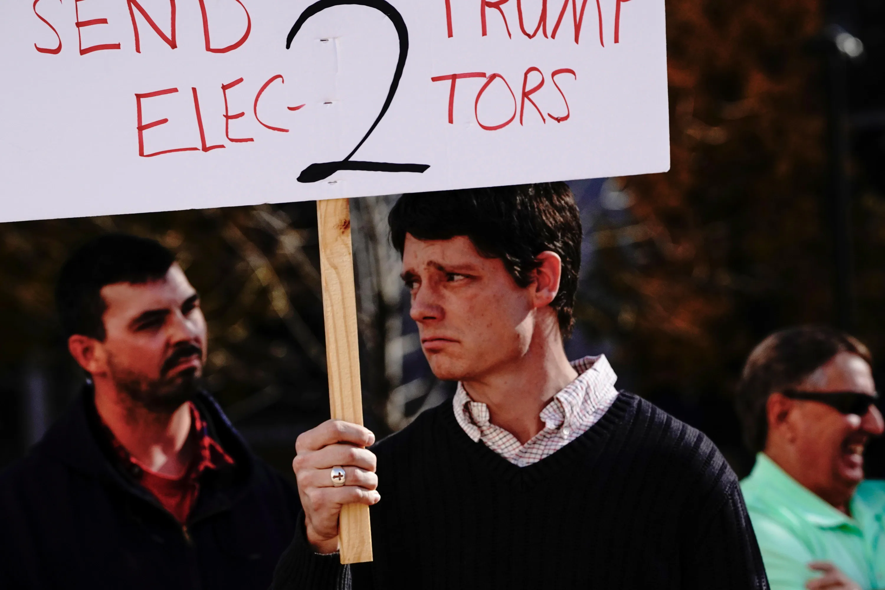 A supporter of U.S. President Donald Trump holds a placard at a “Stop the Steal” protest at the Wisconsin State Capitol, after media announced that Democratic U.S. presidential nominee Joe Biden has won the 2020 U.S. presidential election in Madison, Wisconsin, U.S., November 7, 2020. (Photo by Bing Guan/Reuters)