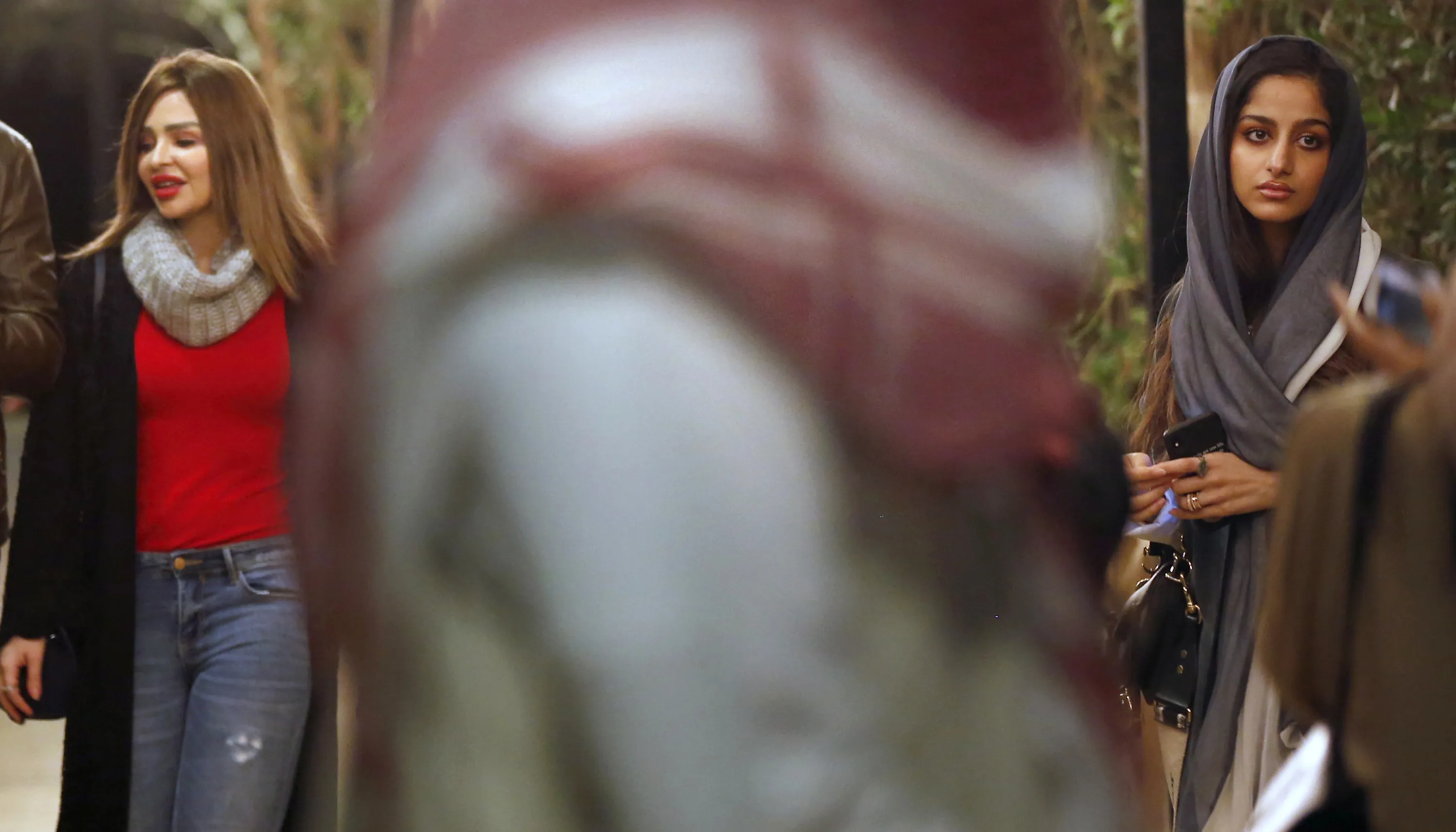 In this December 13, 2019 photo, a man walks by women visiting the Diriyah Oasis amusement park in Diriyah on the outskirts of Riyadh, Saudi Arabia. Hollywood actors, models and social media mavens were invited to Saudi Arabia over the weekend to promote a three-day-long musical festival for young Saudis that took place in the capital, Riyadh. The efforts are aimed at boosting the economy while polishing the country's image abroad and appealing to the young. It's a pivot from just three years ago, when religious police would storm restaurants playing music and harass women in malls for showing their face or wearing red nail polish. (Photo by Amr Nabil/AP Photo)