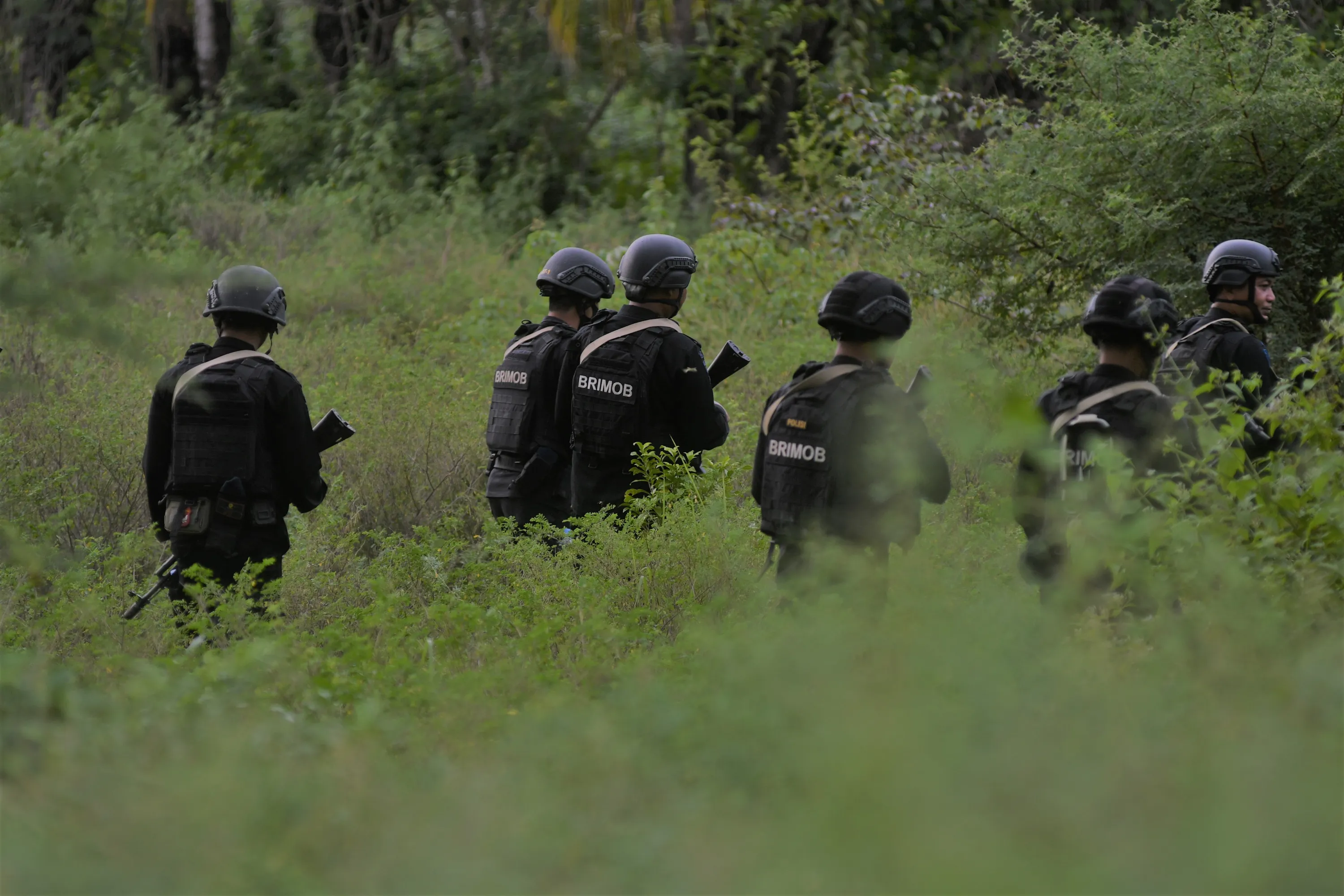 The police conducted a search for fugitive terrorists at the location suspected of being their hiding place in Mamboro Village, North Palu, Central Sulawesi Province, Indonesia, on November 8, 2020. A joint apparatus consisting of the Special Detachment 88 Anti-terror Police, Brimob Polri and TNI pursued two men who were suspected of being members of a terrorist group who were on the Poso Wanted List (DPO) and hiding around the area. (Photo by Mohamad Hamzah/NurPhoto via Getty Images)