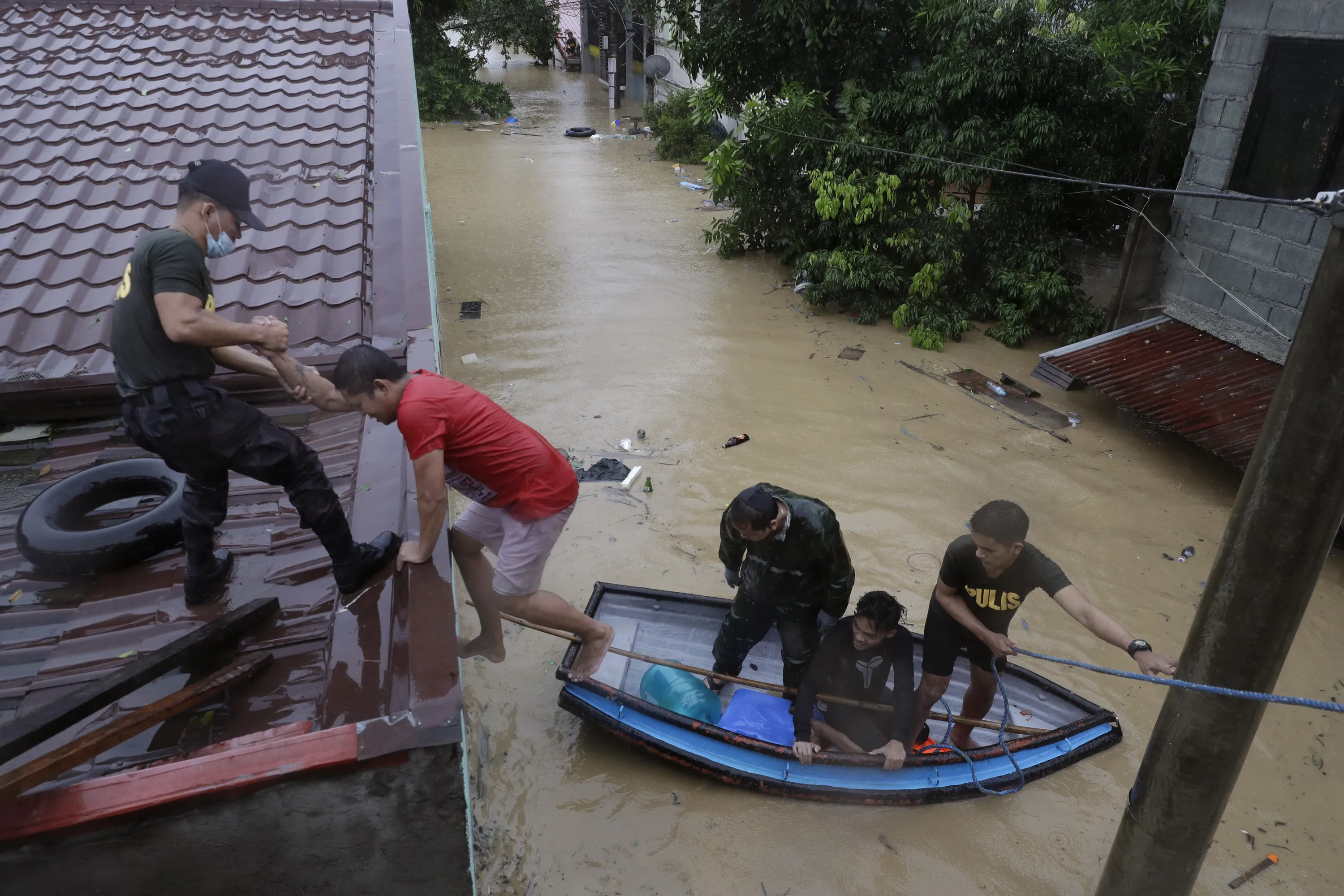 Police rescue residents as floods continue to rise in Marikina, Philippines, due to Typhoon Vamco Thursday, November 12, 2020. (Photo by Aaron Favila/AP Photo)