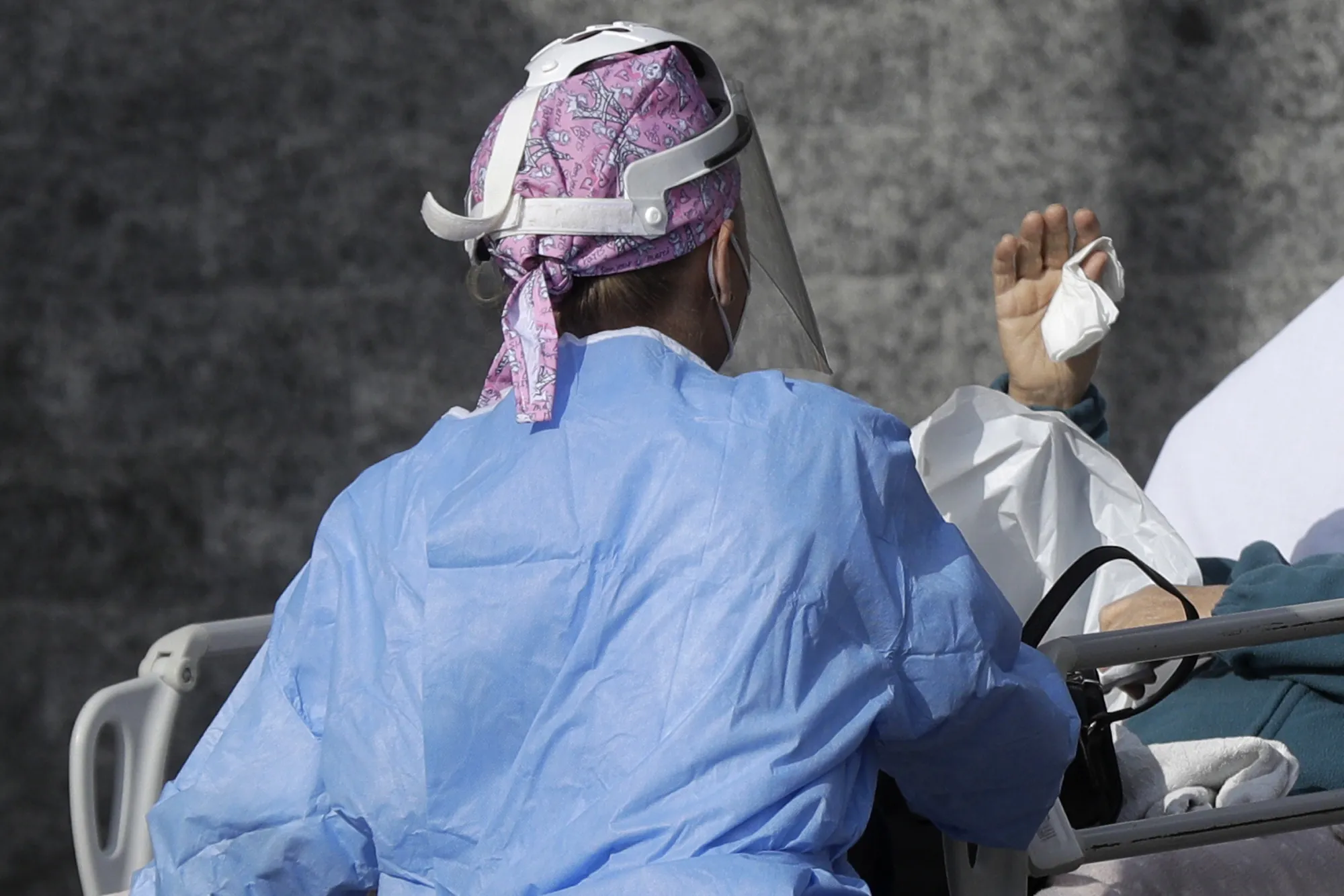 A patient waves to her relative as she is carried inside the first aid area of the Cardarelli hospital in Naples, Italy, Friday, November 13, 2020. Italian Government and health officials were analyzing data to see if the hard-strapped Campania region, which includes Naples, should be declared a red-zone. (Photo by Gregorio Borgia/AP Photo)
