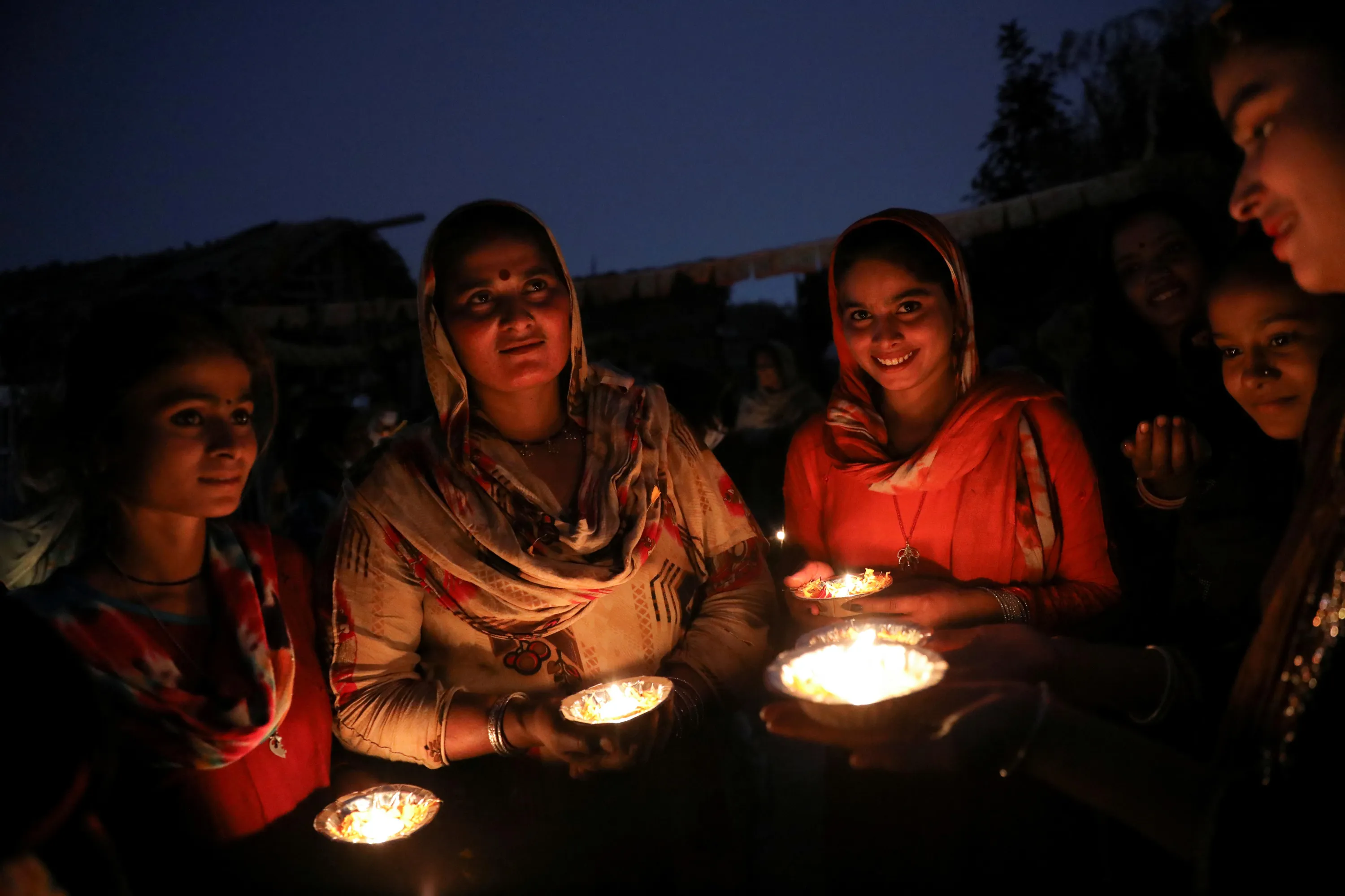 Pakistani Hindu refugees hold candles as they celebrate on the eve of Diwali, the Hindu festival of lights, during a visit by a Bharatiya Janata Party (BJP) politician, in New Delhi, India on November 13, 2020. (Photo by Anushree Fadnavis/Reuters)